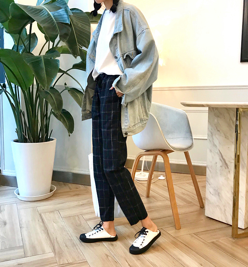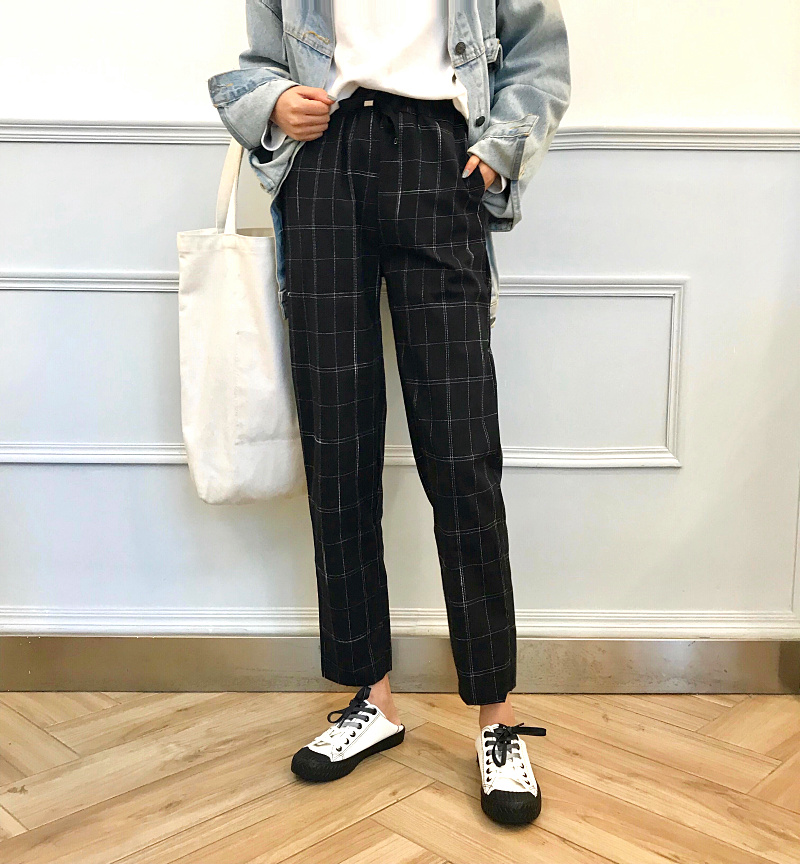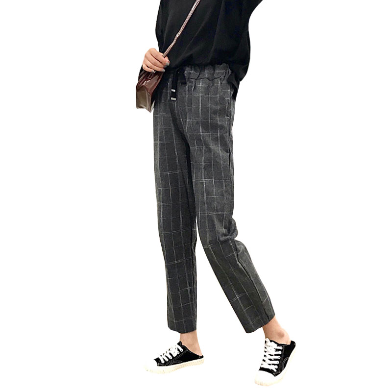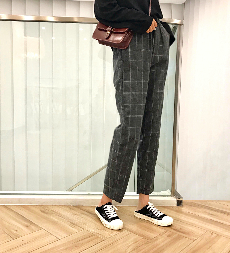 / 秋冬女裝韓版加絨加厚格子闊腿褲學生褲子高腰直筒褲休閑褲九分褲