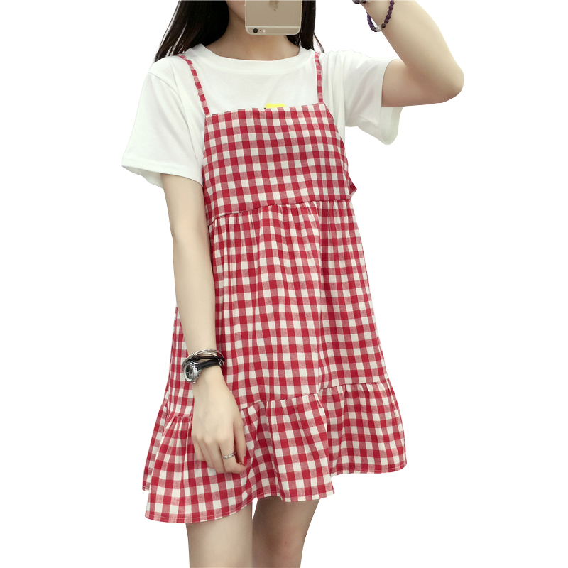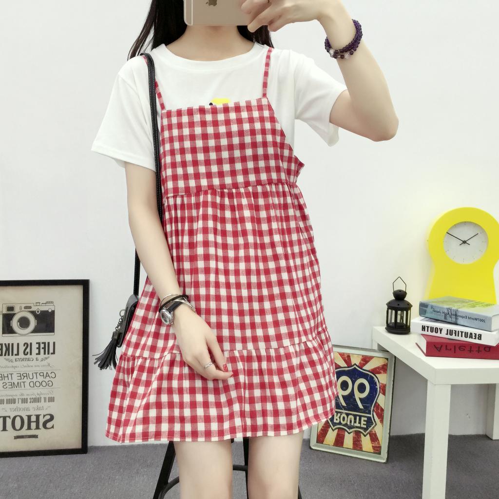 / 春季女裝新款韓版小清新格子吊帶短裙日系軟妹娃娃裙女學生連衣裙