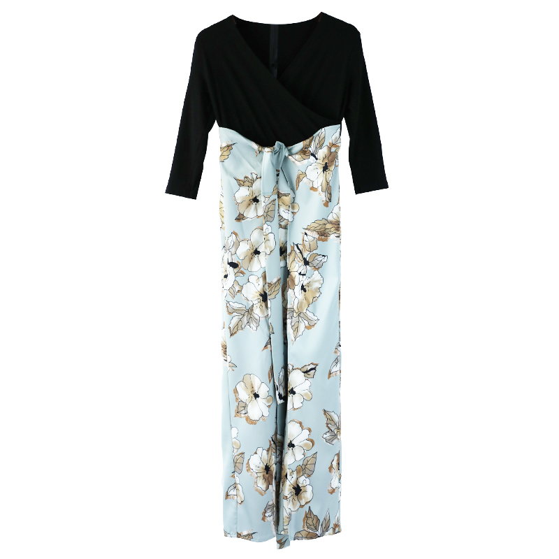 / 女神范2018秋季新款開叉高腰連衣褲顯瘦韓版名媛氣質連體褲子潮
