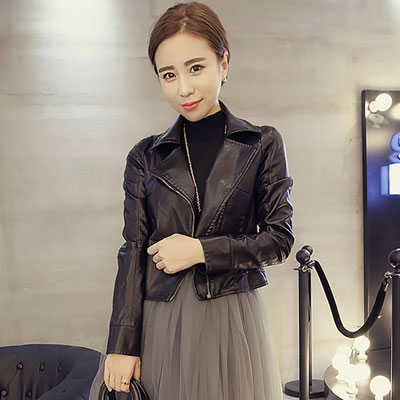 女式高腰短款pu機車皮衣外套女2018新款女士小夾克外套女套百搭秋