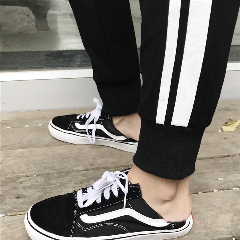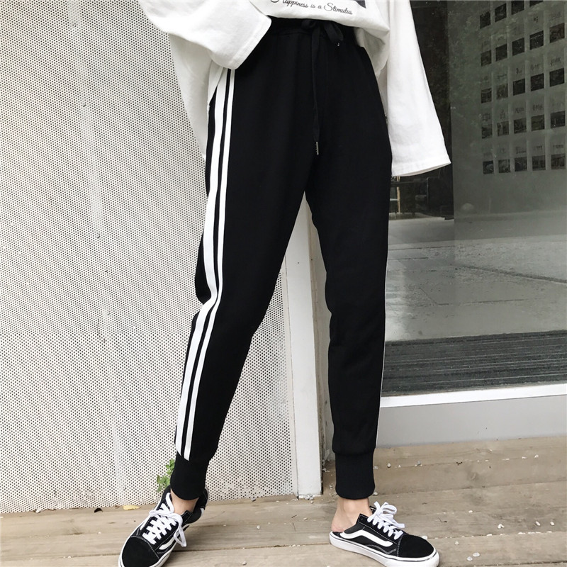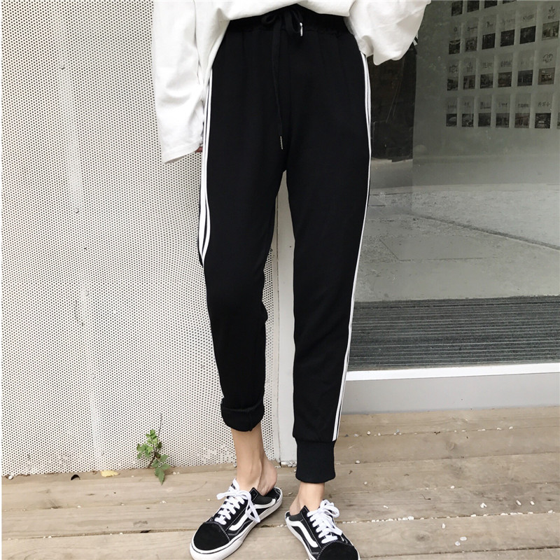 / 秋裝女裝韓版運動風側面寬松條紋哈倫褲九分褲休閑褲抽繩長褲學生