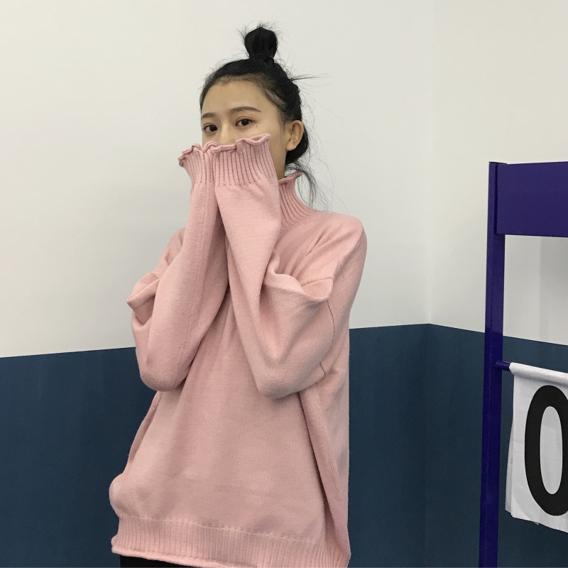 / 秋冬女裝韓版chic寬松套頭卷邊高領網紅打底衫針織衫外穿毛衣上衣