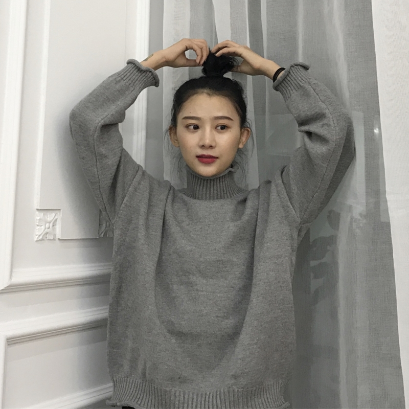 秋冬女裝韓版chic寬松套頭卷邊高領網紅打底衫針織衫外穿毛衣上衣
