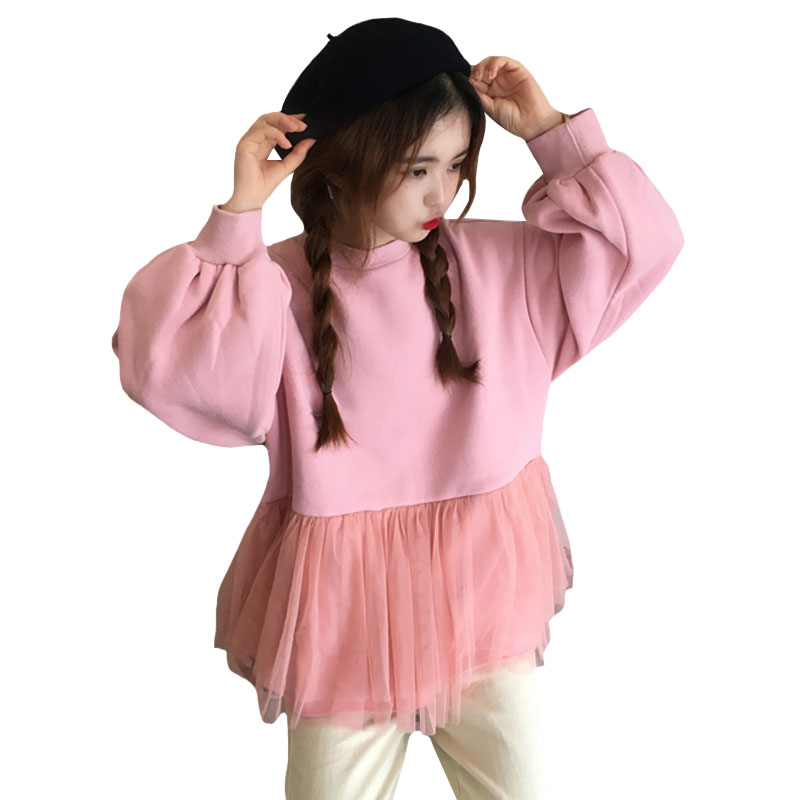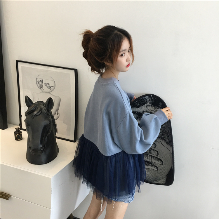 / 秋冬2018新款韓版BF風寬松網紗拼接pp home超火酷衛衣上衣外套女