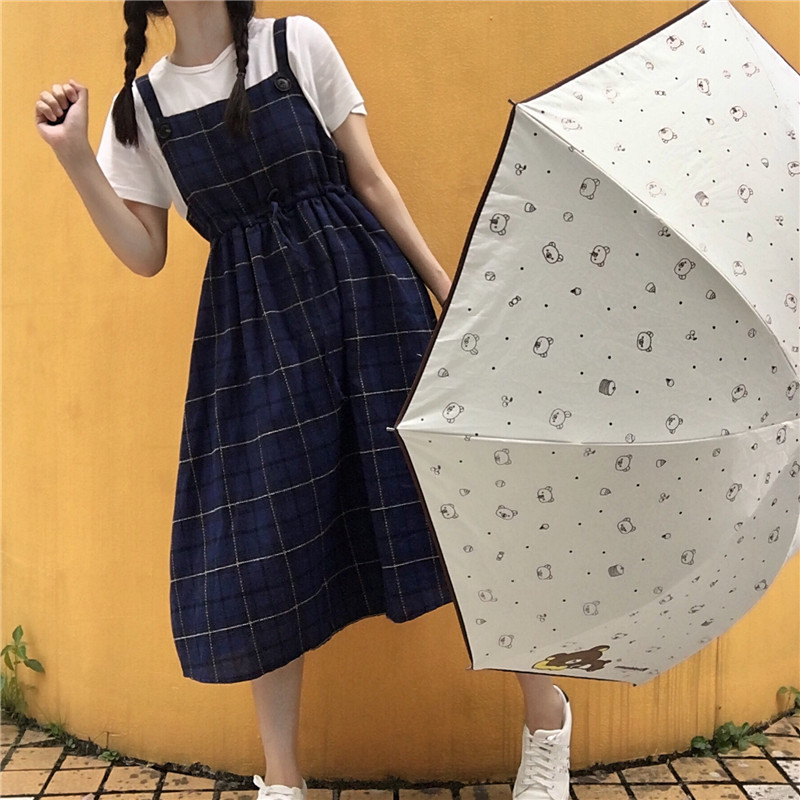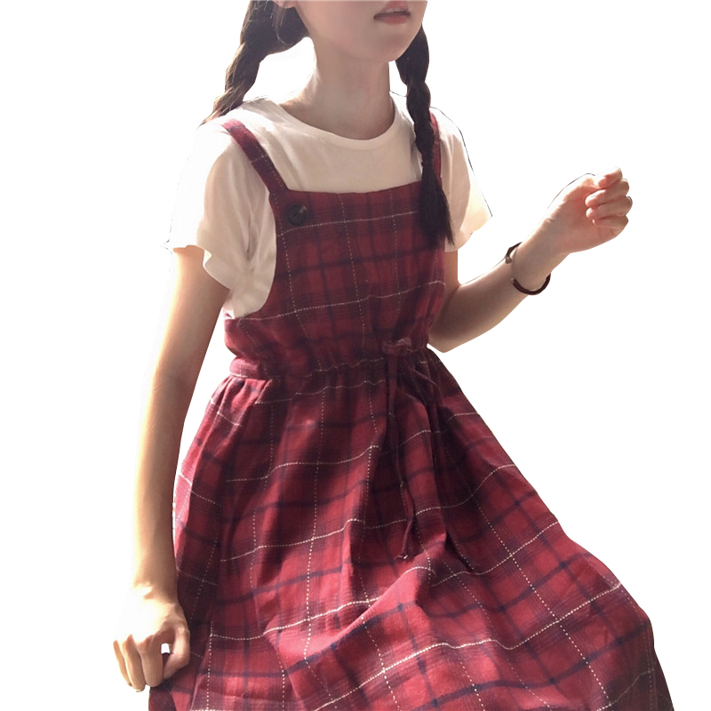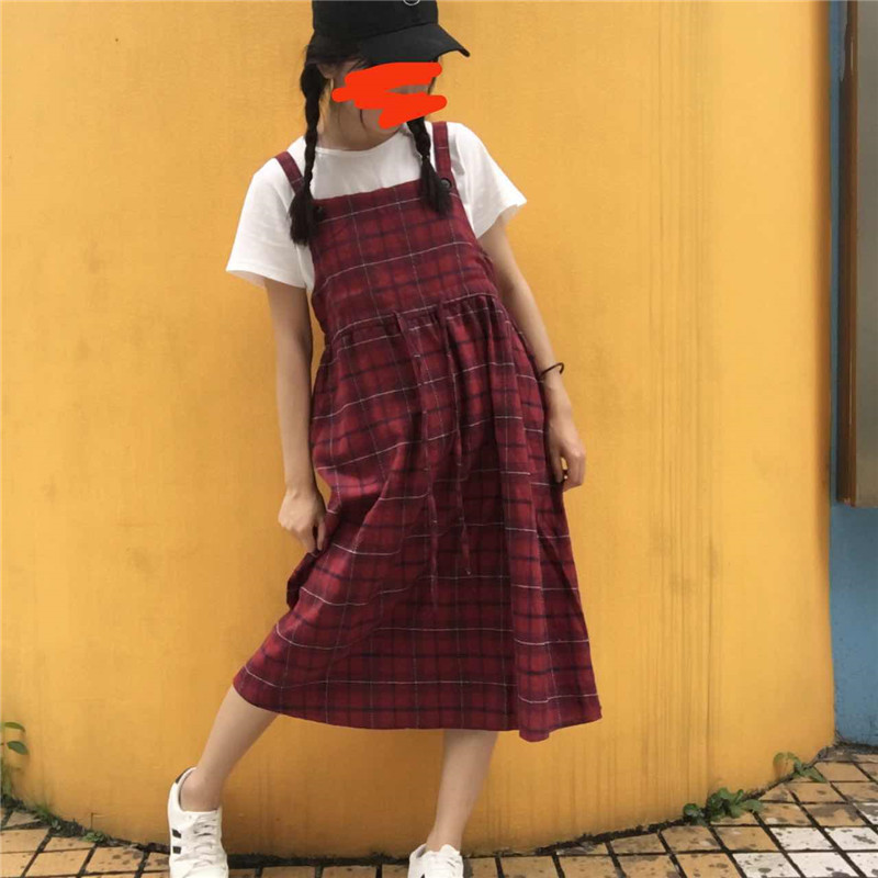 / 夏裝女裝韓版中長款格子背帶裙高腰顯瘦學生無袖背心裙露肩連衣裙