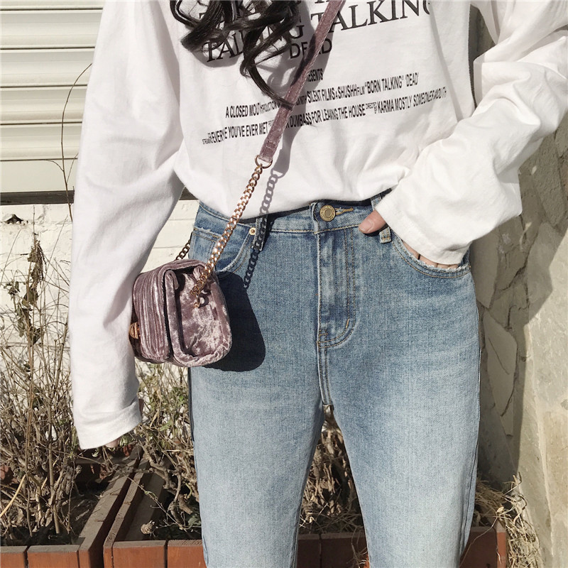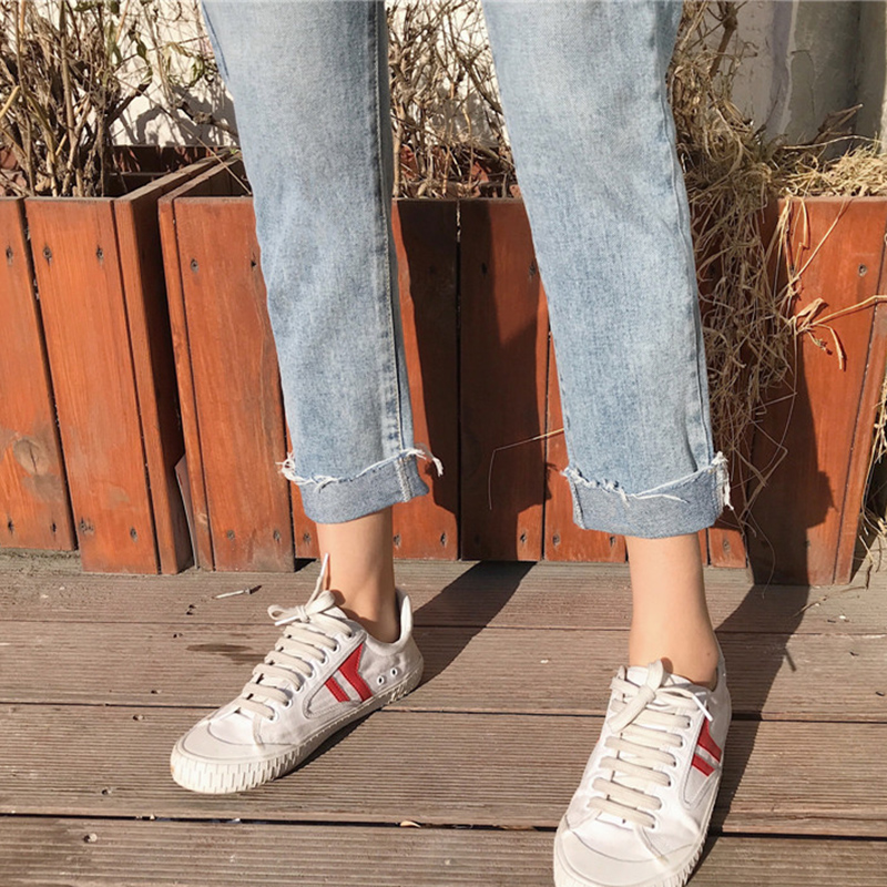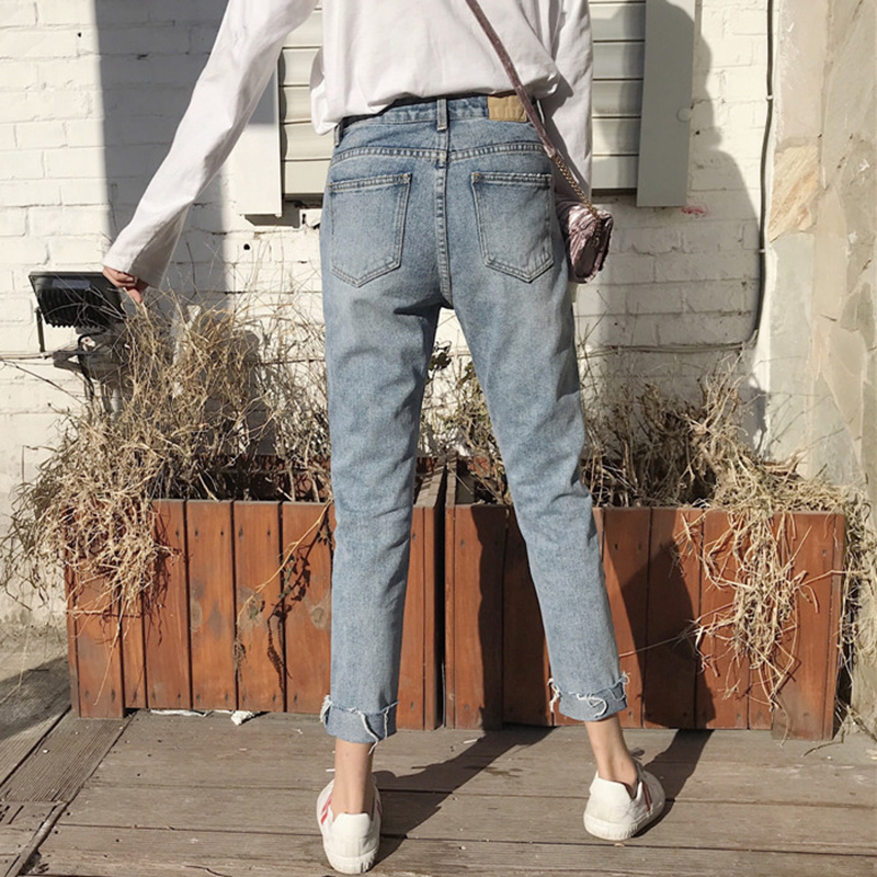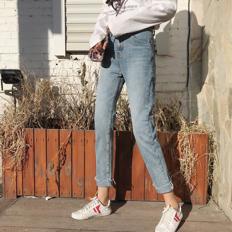 / 秋裝高腰顯瘦須邊復古九分牛仔褲女學生韓版百搭做舊水洗直筒褲潮