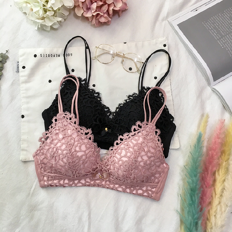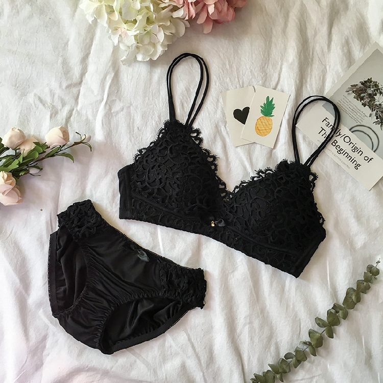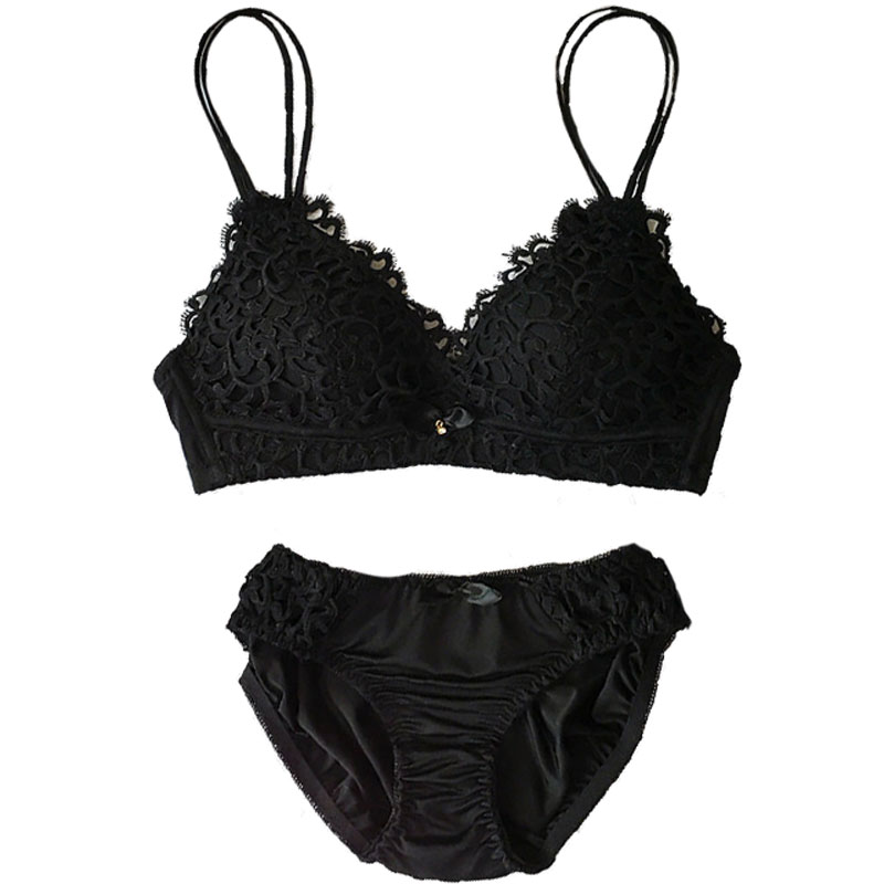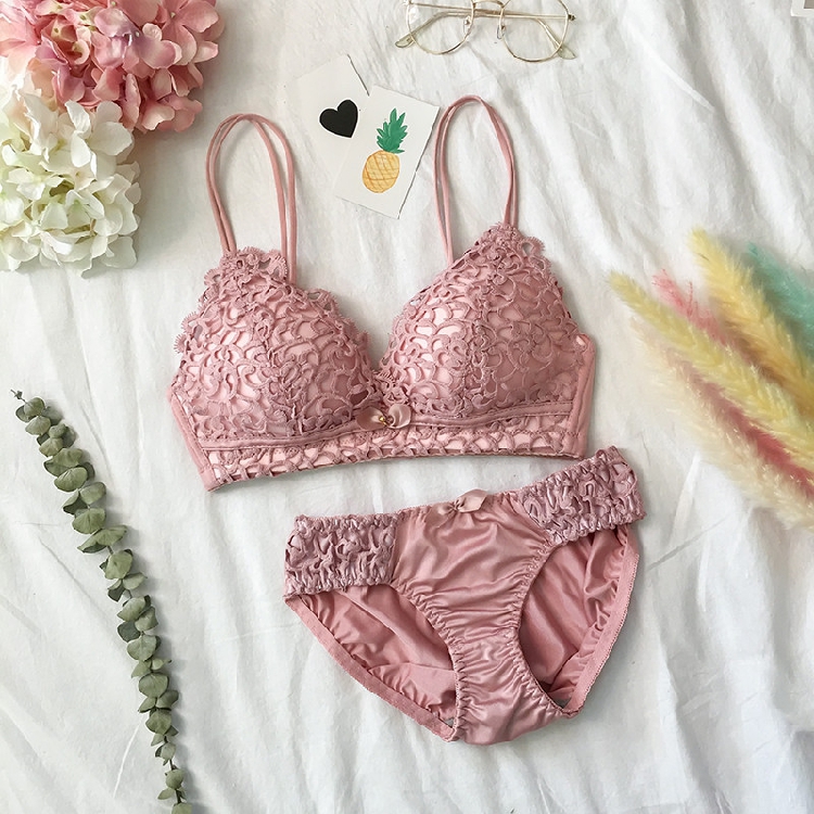 / 韓版蕾絲裹胸無鋼圈聚攏文胸性感胸罩套裝學生內衣內褲兩件套女士