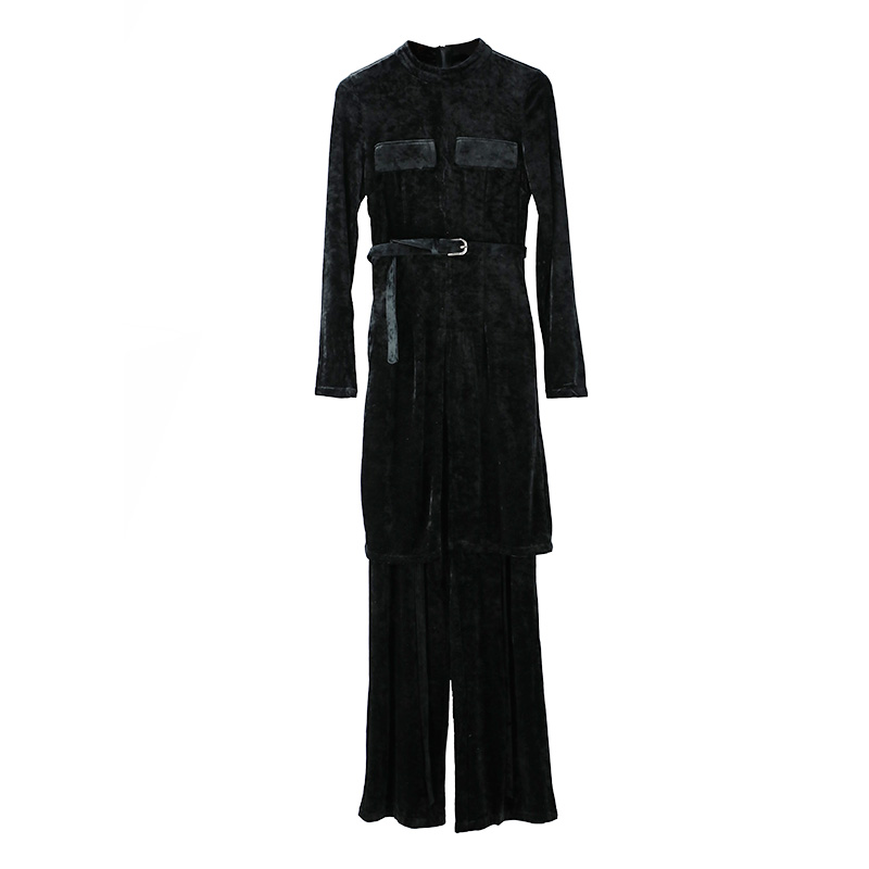 名媛睡衣風外穿休閑氣質上衣歐洲站絲絨闊腿長褲兩件套女神范套裝