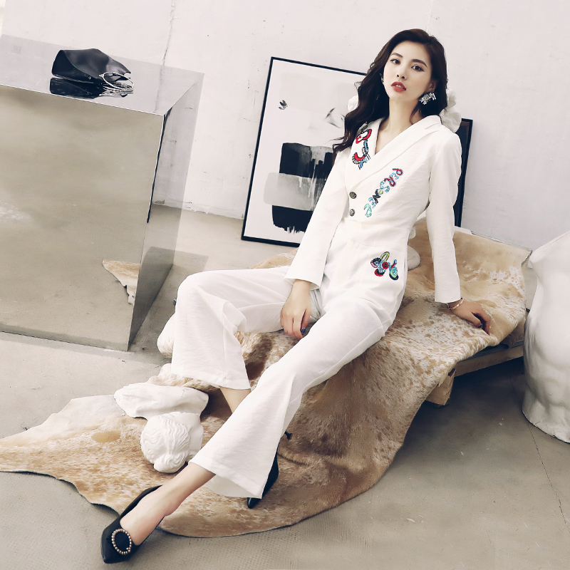 / 名媛氣質連體褲女秋季2018新款顯瘦刺繡繡花復古長袖連衣闊腿褲潮