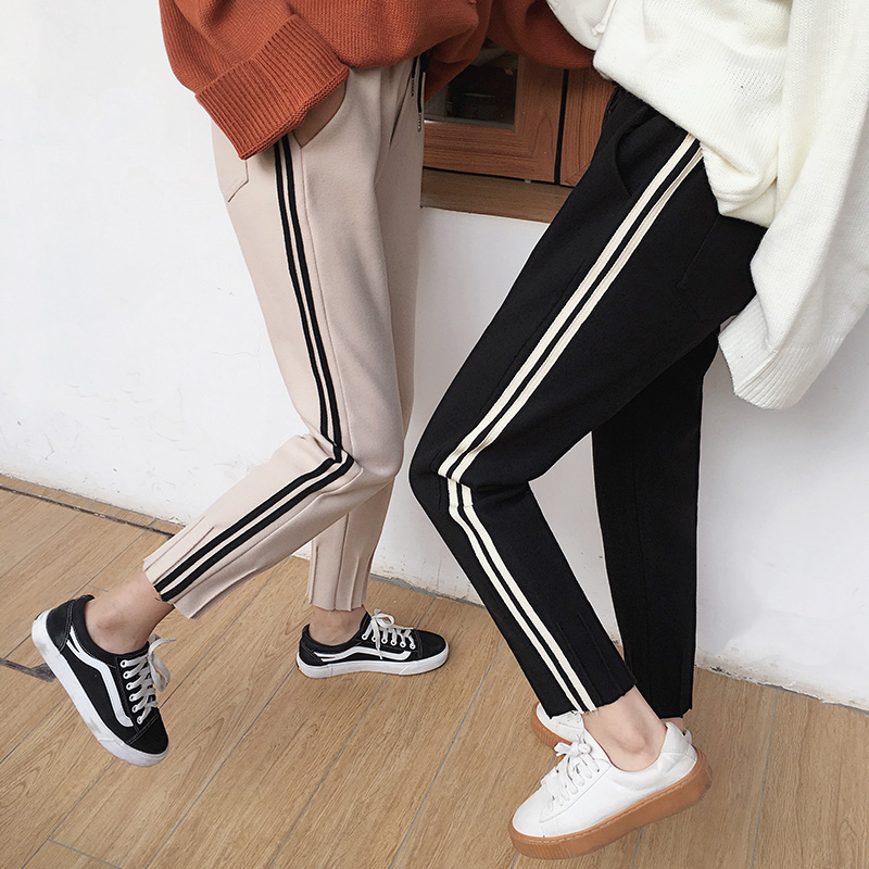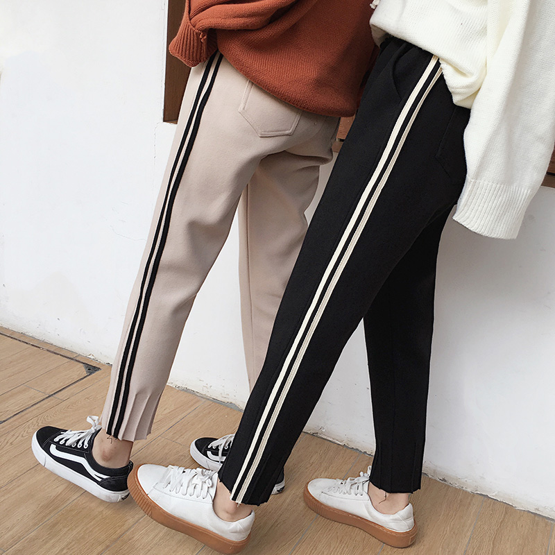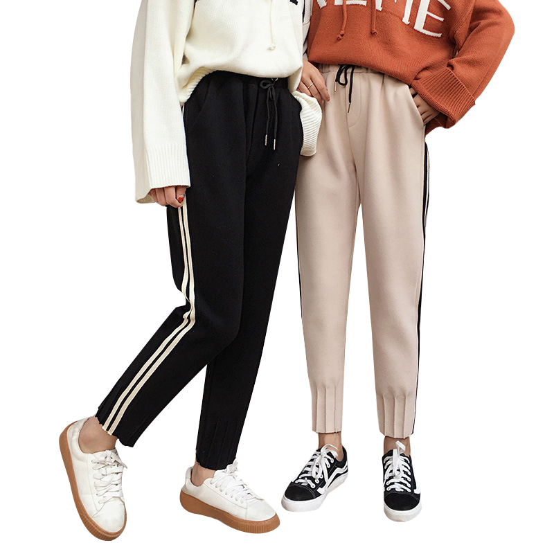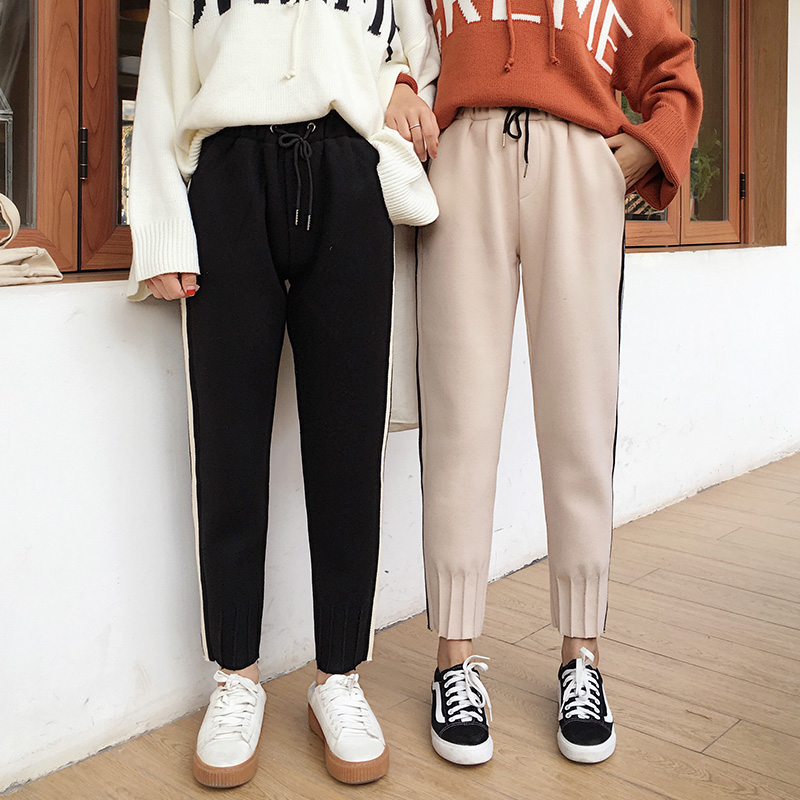 / 秋冬女裝韓版寬松加厚呢子哈倫褲高腰直筒褲九分褲休閑褲學生褲子