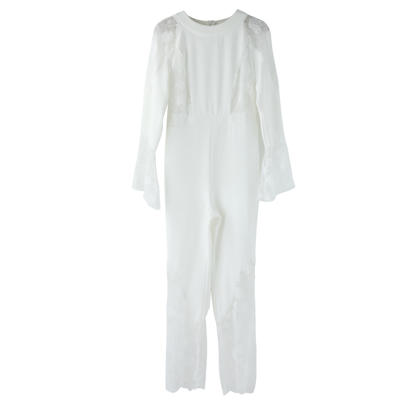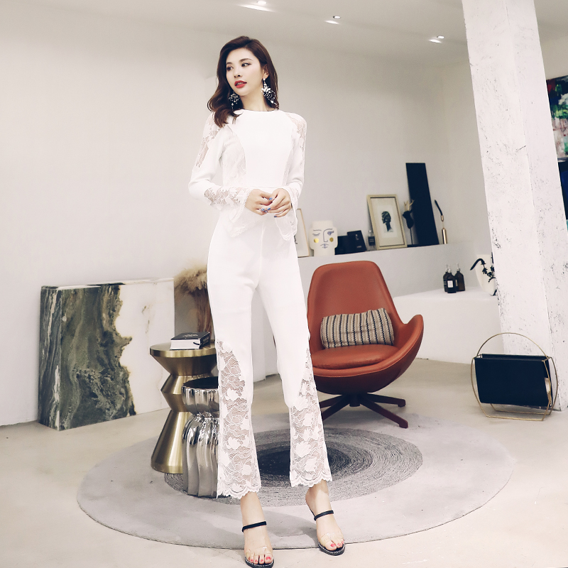 女神范時尚名媛氣質女夏2018秋裝新款高腰蕾絲拼接顯瘦連體褲子