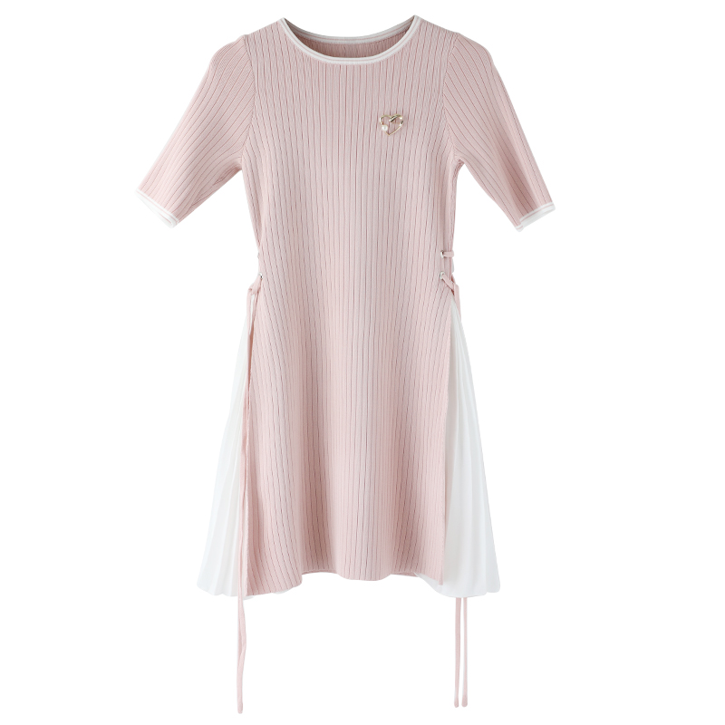 / S秀時尚2018秋季新款淑女氣質短袖針織拼接連衣裙女超仙女裙子
