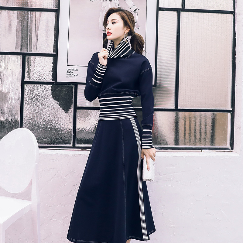 早秋裝御姐范女時尚女神氣質俏皮彈力棉網紅洋氣寬松裙子兩件套裝