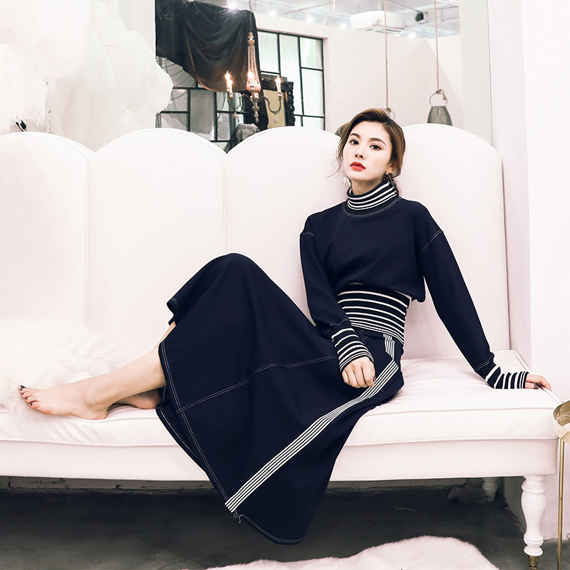 / 早秋裝御姐范女時尚女神氣質俏皮彈力棉網紅洋氣寬松裙子兩件套裝