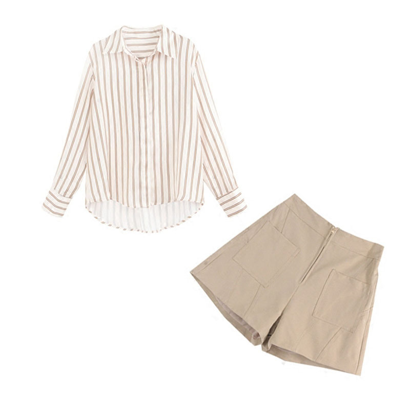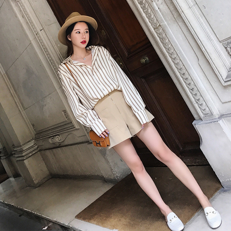7066條紋襯衫+闊腿短褲