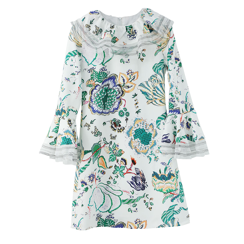 / 名媛氣質印花連衣裙2018秋裝新款高腰小清新長袖休閑氣質連衣裙潮