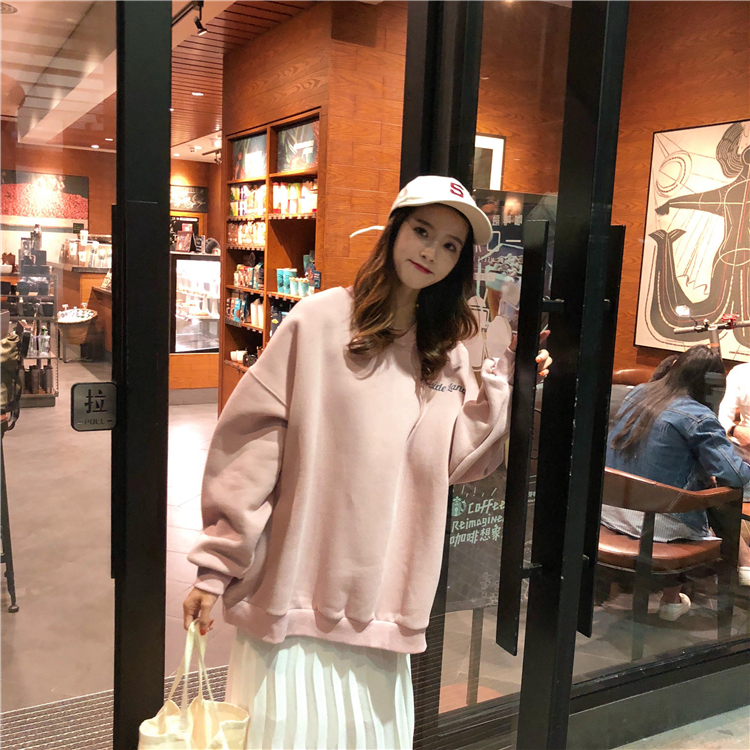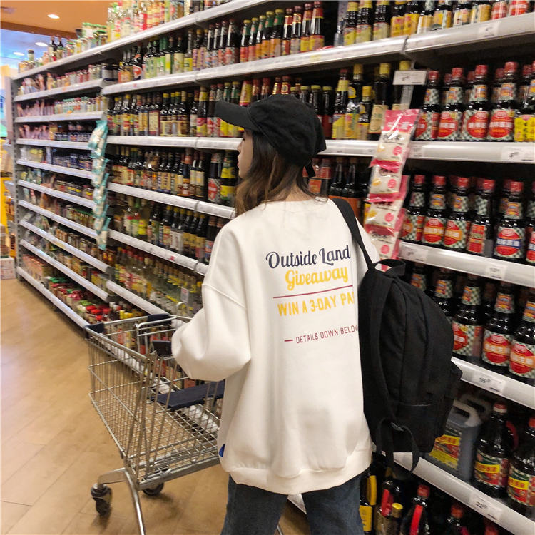 秋冬女裝韓版寬松中長款原宿風字母加厚抓絨套頭超火衛衣上衣外套
