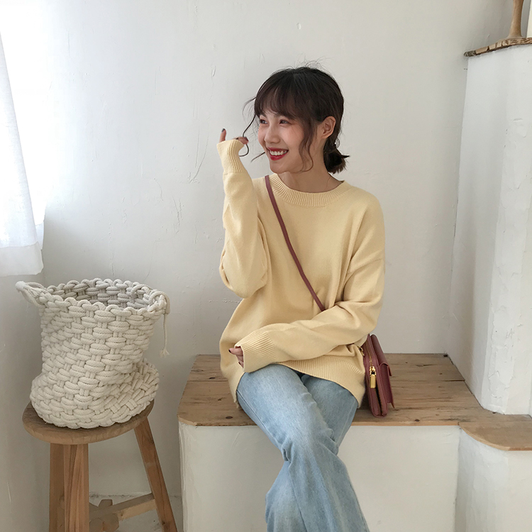 / 秋冬女裝韓版簡約純色寬松甜美保暖針織衫網紅套頭毛衣打底衫上衣