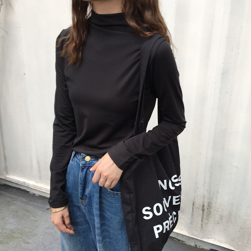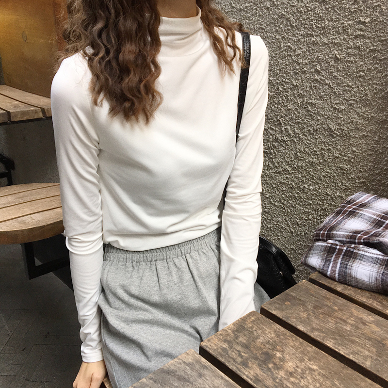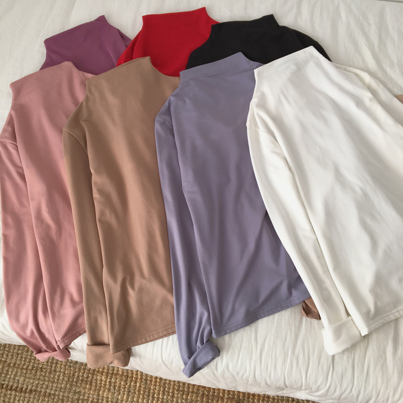 秋冬女裝韓版純色半高領修身加絨加厚保暖打底衫長袖T恤顯瘦上衣