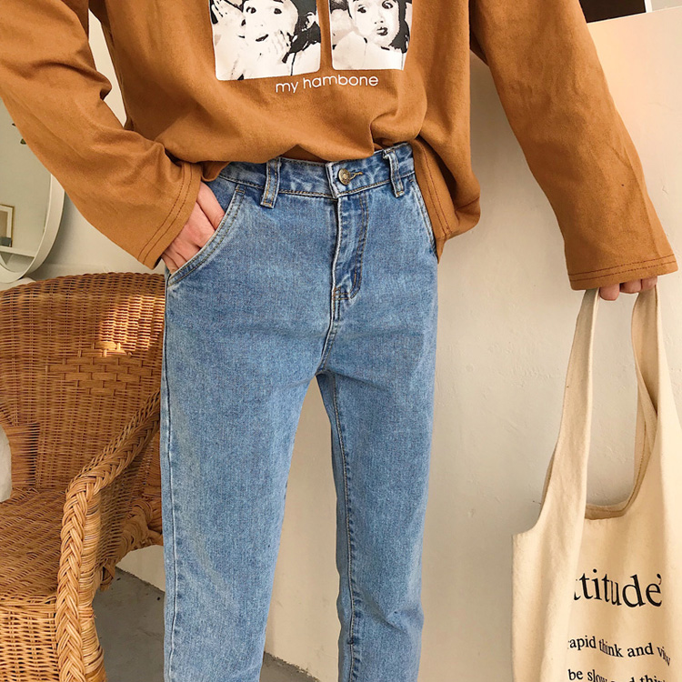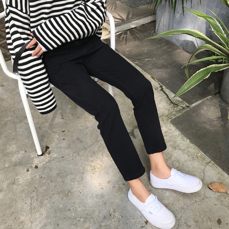 / 秋裝女裝新款韓版高腰黑色休閑褲直筒褲九分褲顯瘦牛仔褲長褲學生