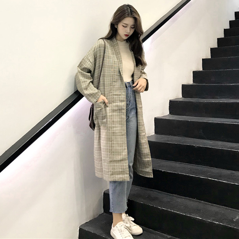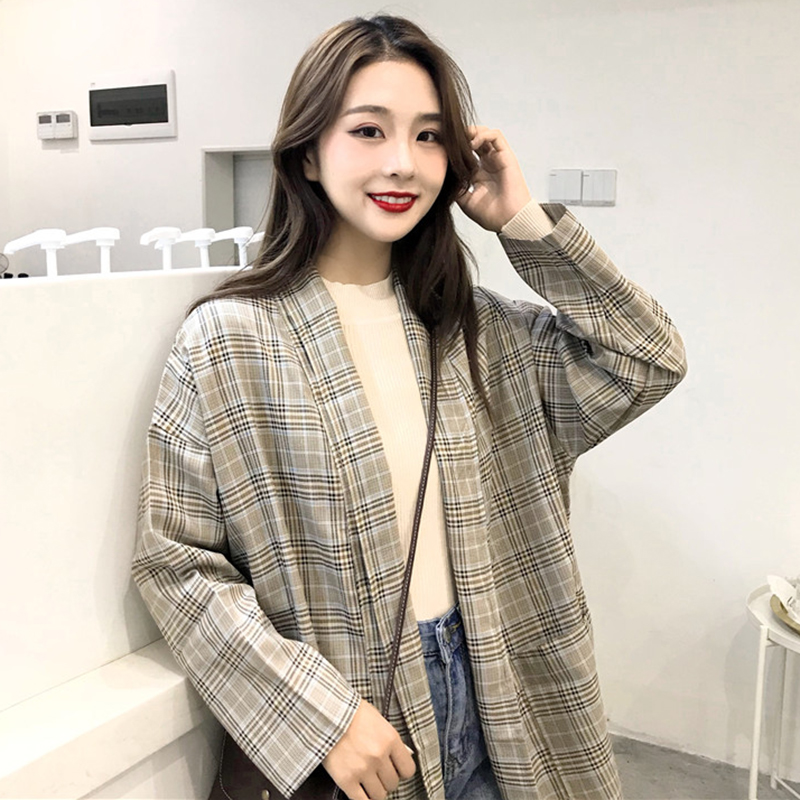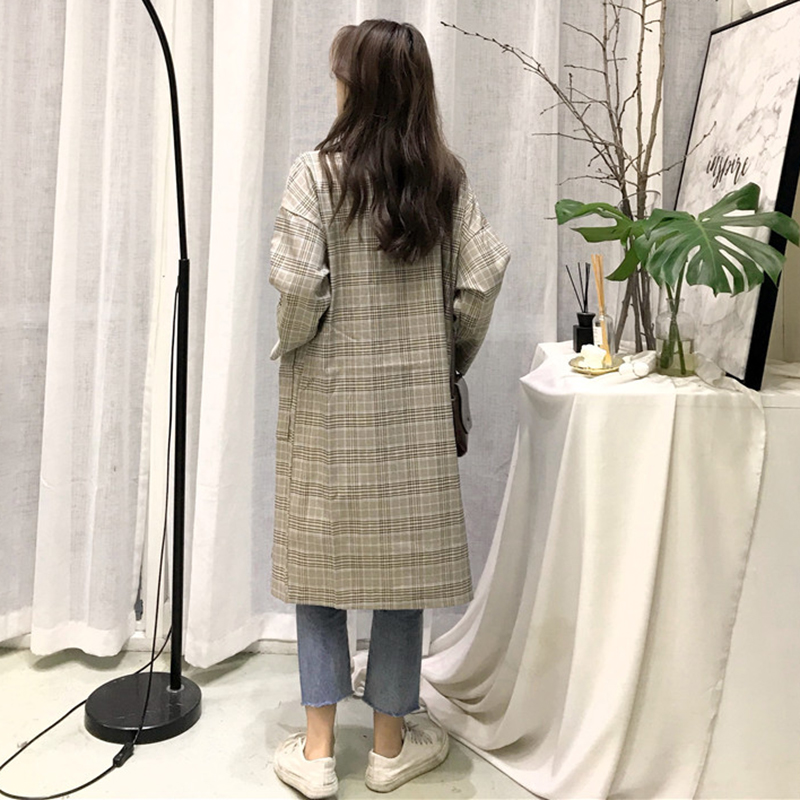 / 西裝秋裝女2018新款港味復古中長格子外套時尚氣質寬松長袖上衣潮