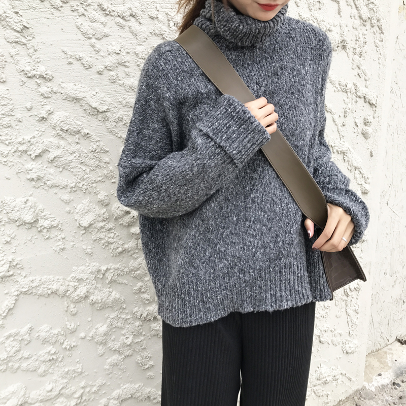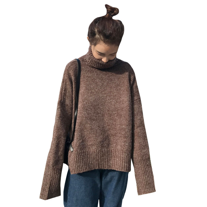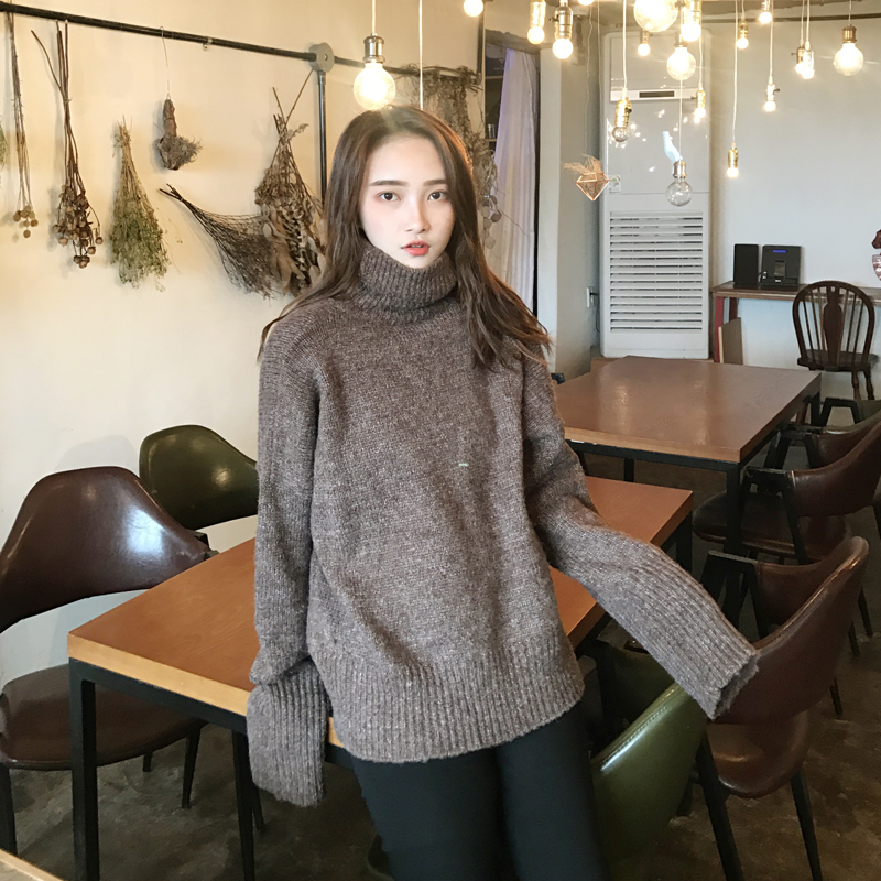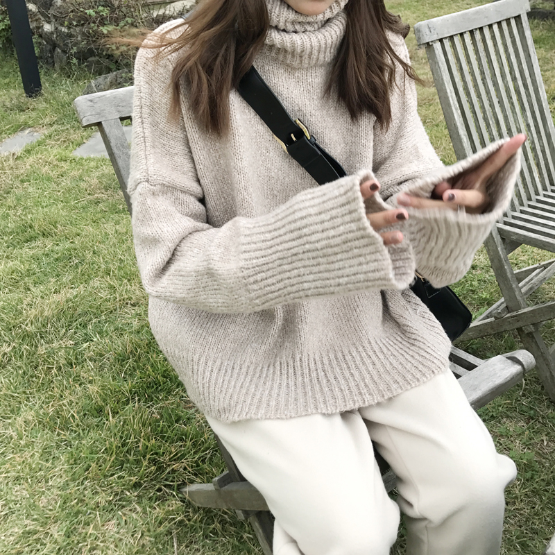 / 秋冬韓版寬松復古純色加厚保暖高領網紅套頭毛衣針織衫上衣外套女