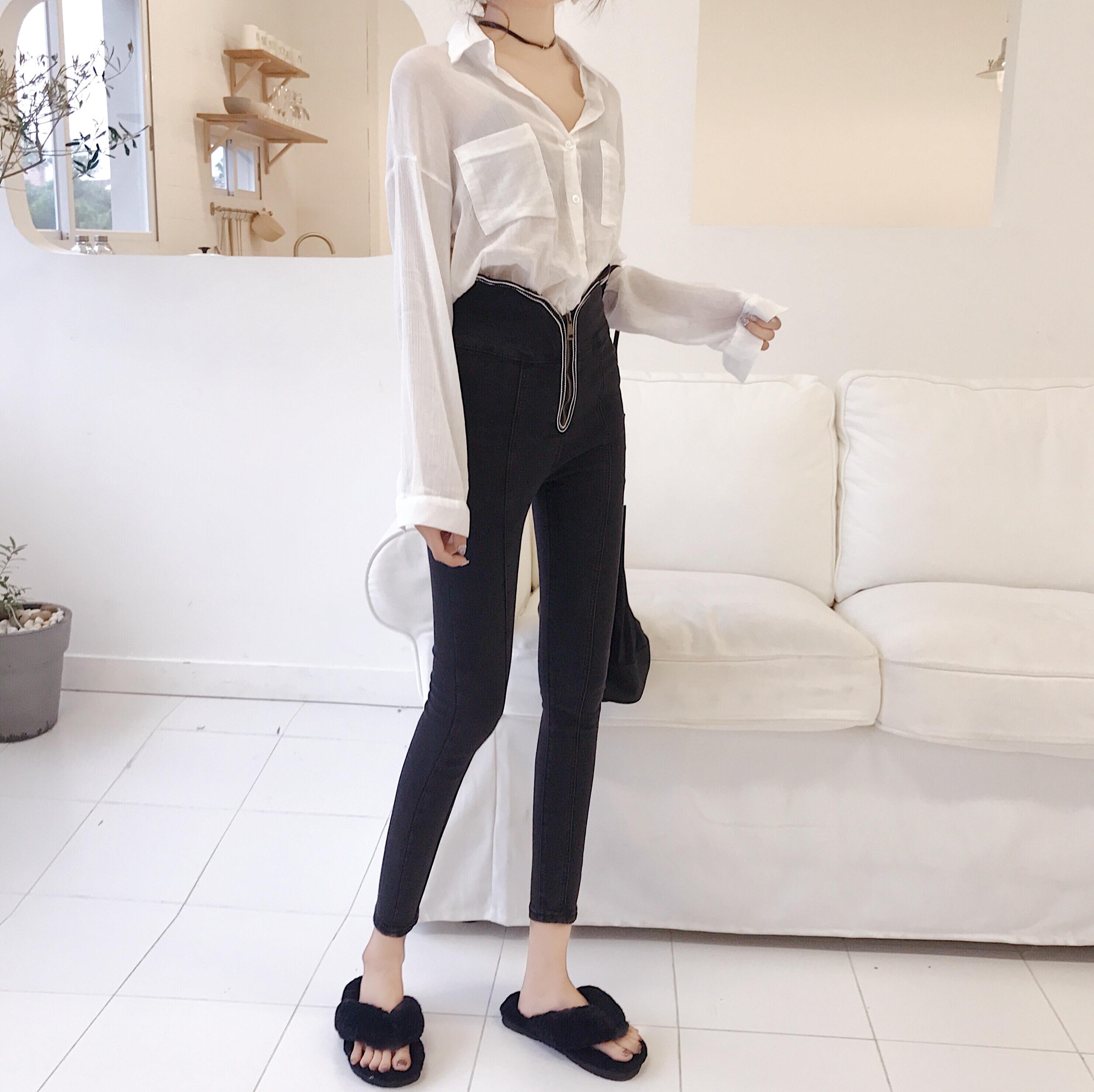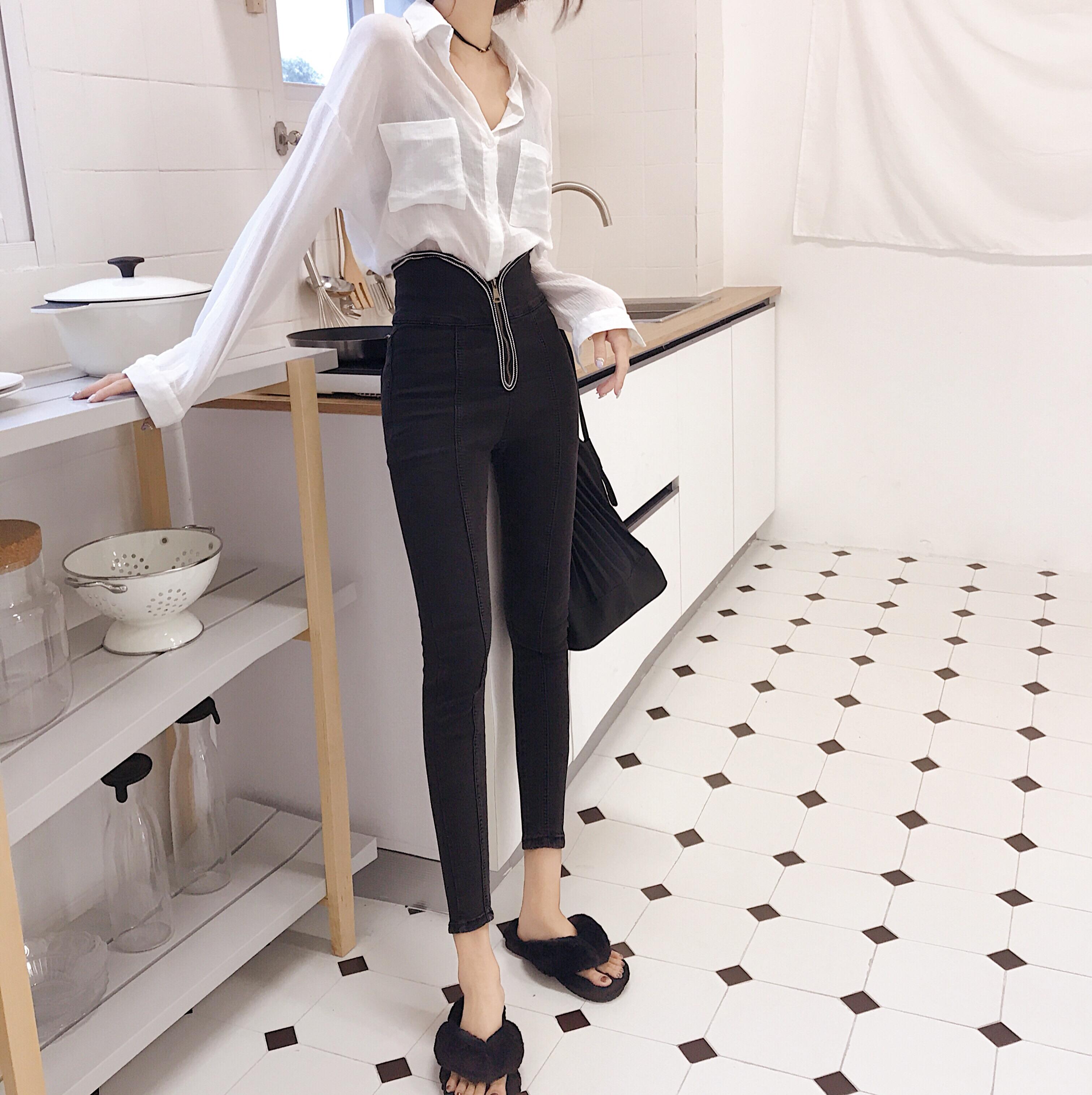 / chic風褲子韓國高腰顯瘦緊身彈力牛仔褲女秋冬2018新款拉鏈鉛筆褲