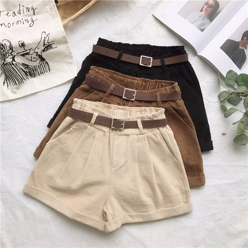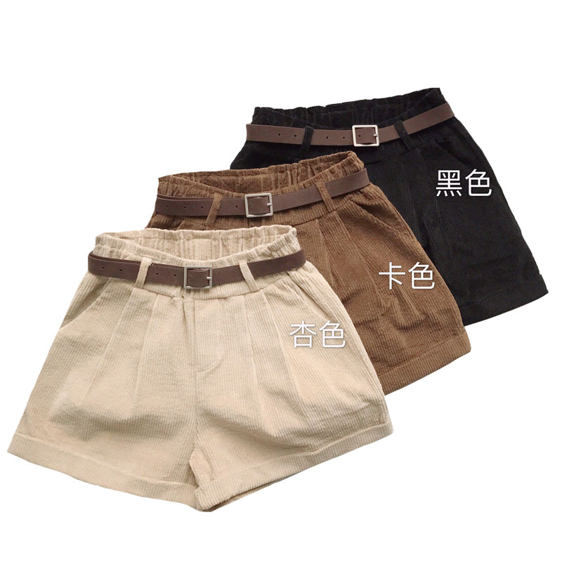/ 秋冬女裝韓版寬松燈芯絨加厚闊腿褲短褲高腰直筒褲休閑褲學生褲子