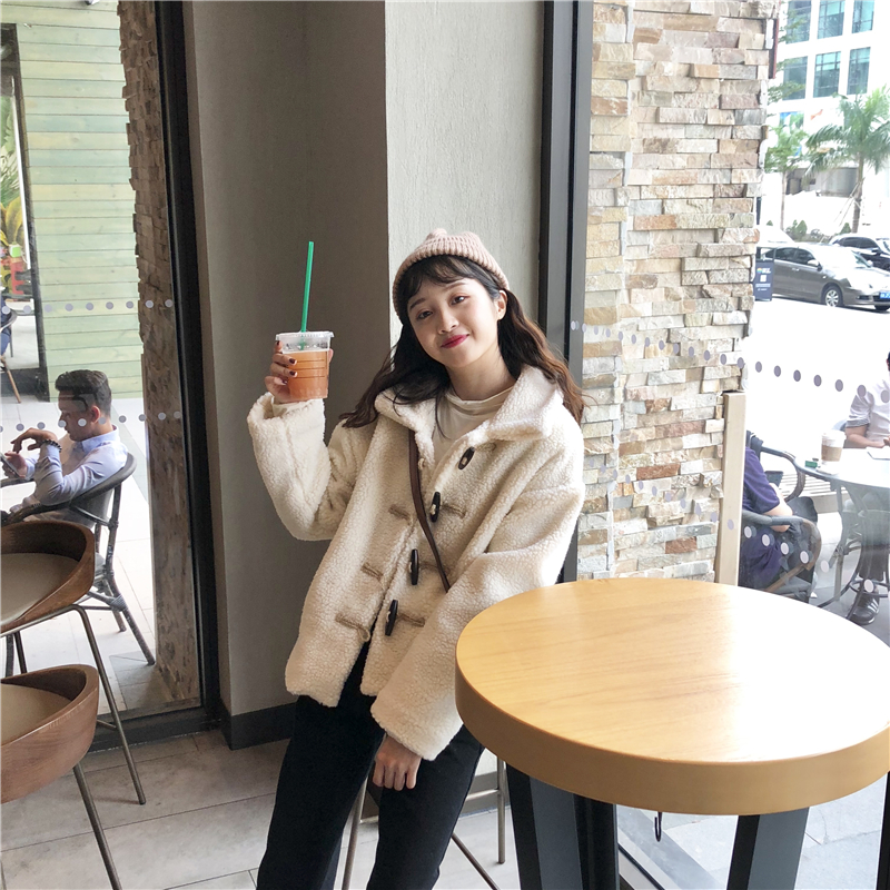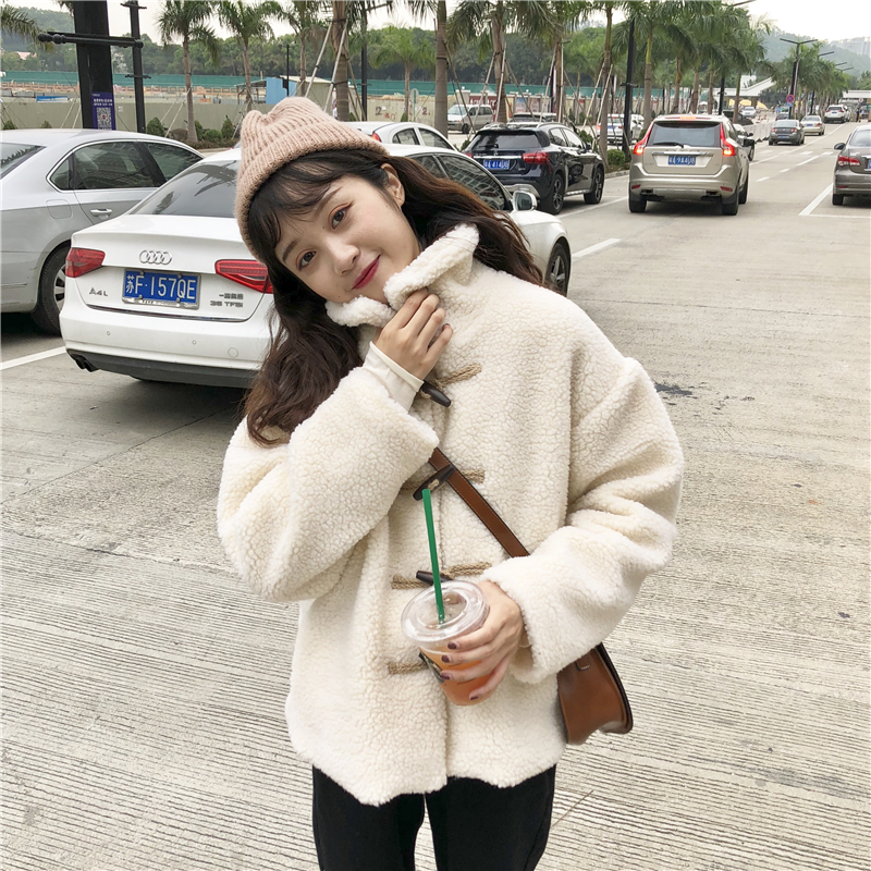 / 2018新款冬季韓版復古寬松牛角扣加厚保暖仿羊羔毛棉衣棉服外套女