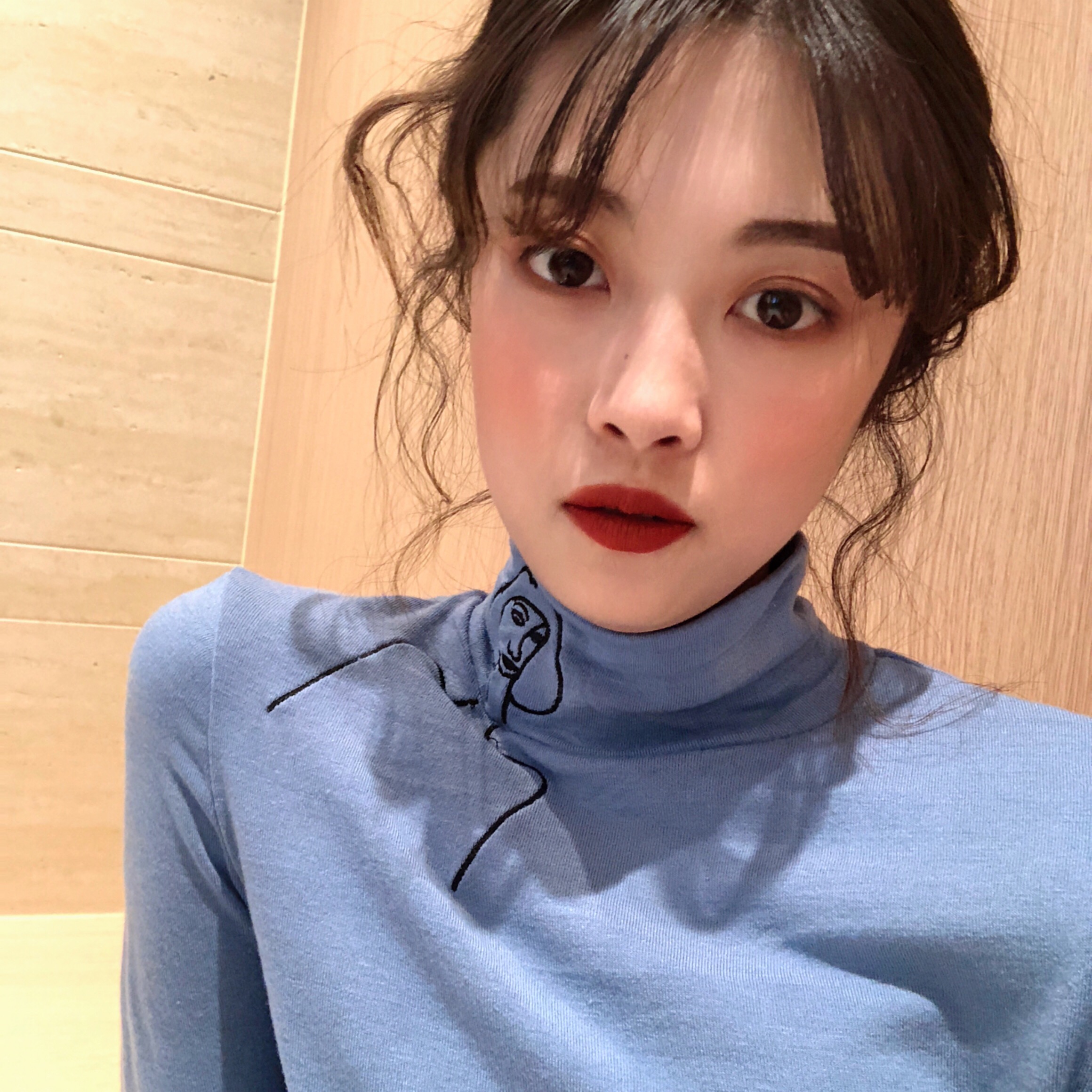 秋冬女裝韓版修身顯瘦卡通領口人物半高領長袖打底衫T恤上衣學生
