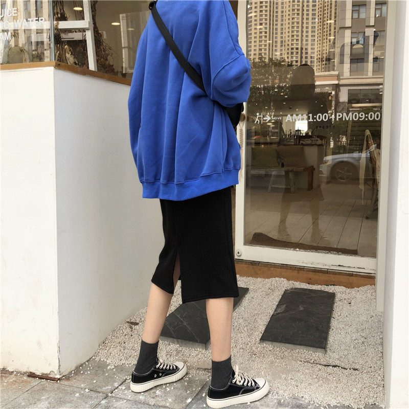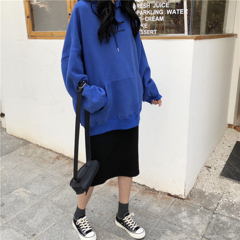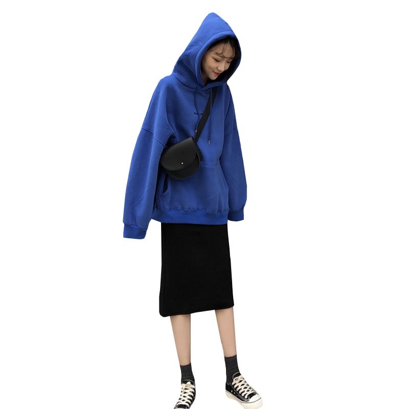 / 韓版時尚休閑套裝秋冬字母刺繡連帽加絨衛衣+針織半身裙兩件套女