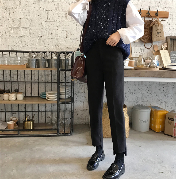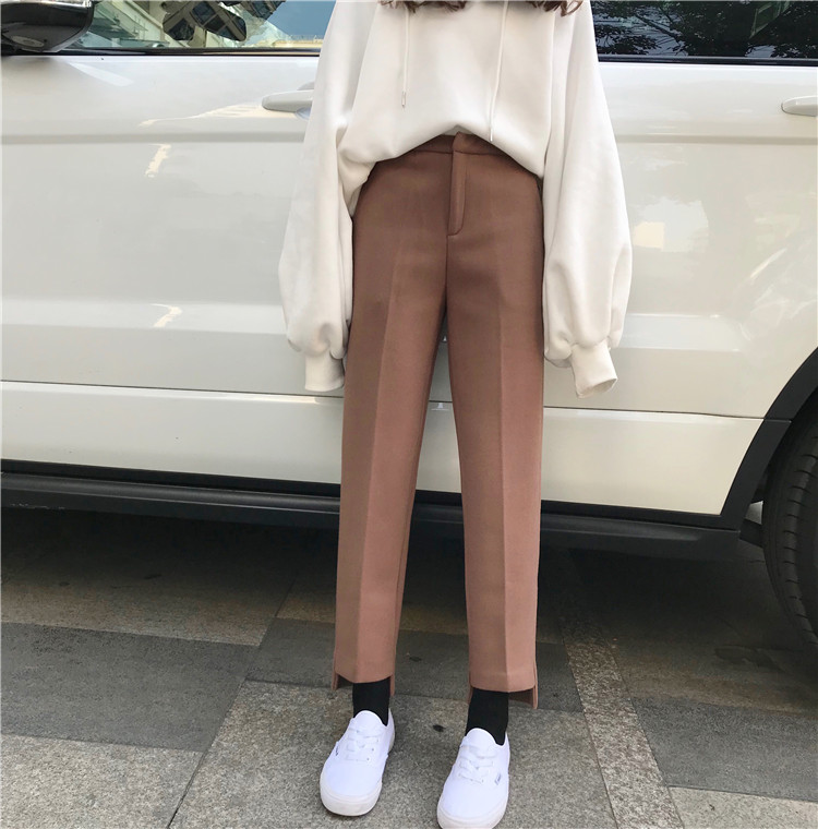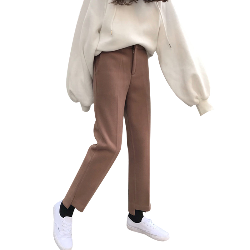 / 秋冬女裝韓版寬松加厚直筒褲西褲毛呢褲子高腰闊腿褲休閑褲九分褲
