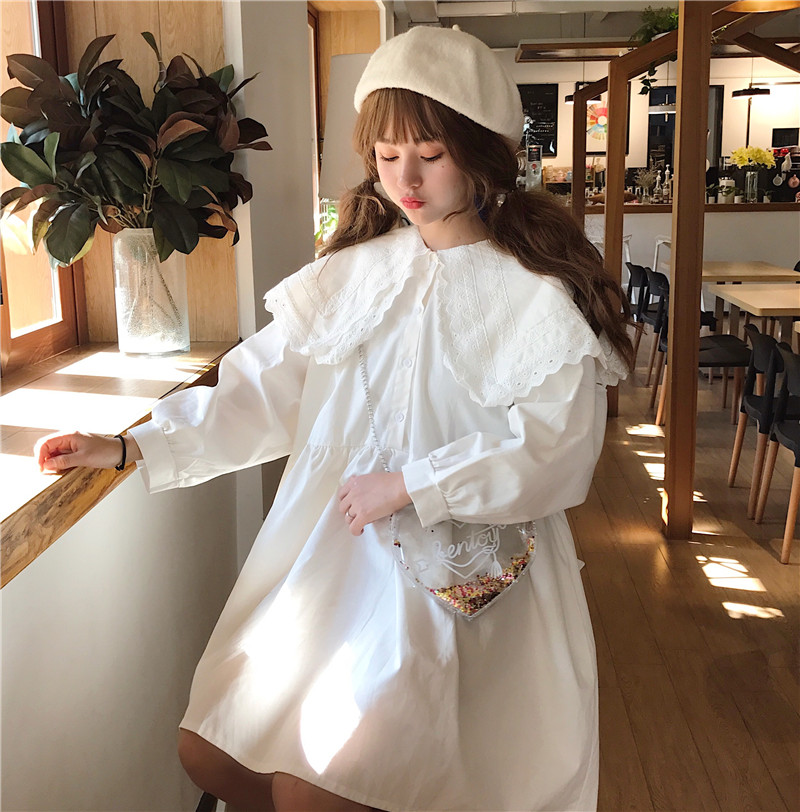 前面是雙層大翻領襯衫領,減齡又不失個性,現在內搭穿配個打底襪漆皮鞋,很好看哦!!!推薦!!
