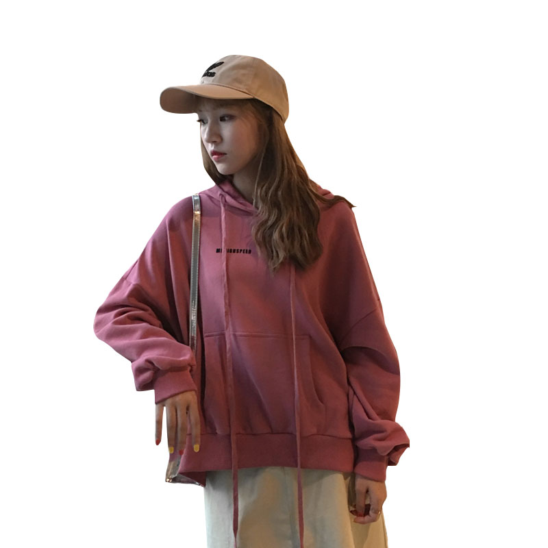 秋裝女裝韓版百搭寬松字母連帽休閑套頭衛衣學生長袖顯瘦上衣外套
