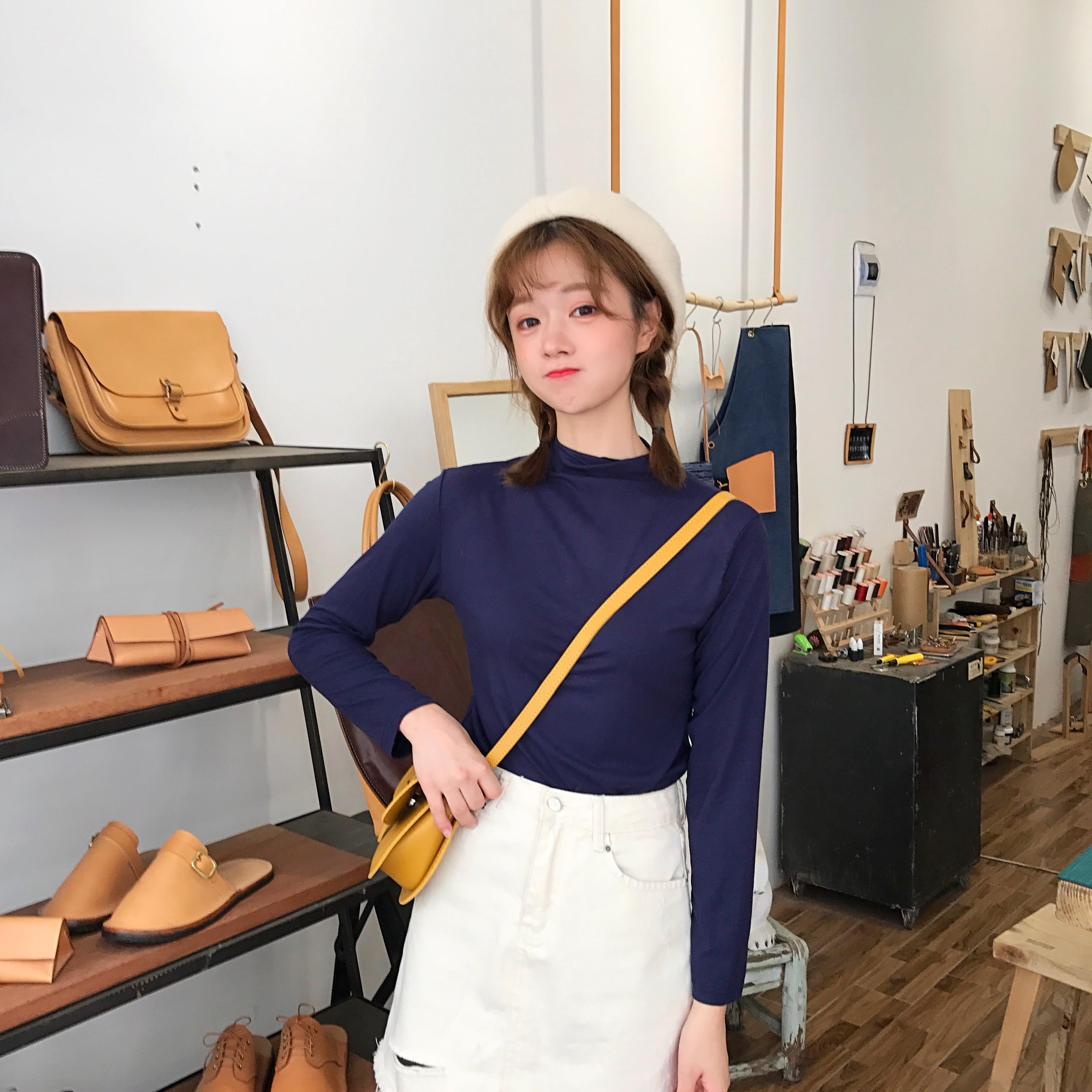 2018新款秋季女裝韓版純色百搭修身顯瘦打底衫長袖T恤上衣學生潮