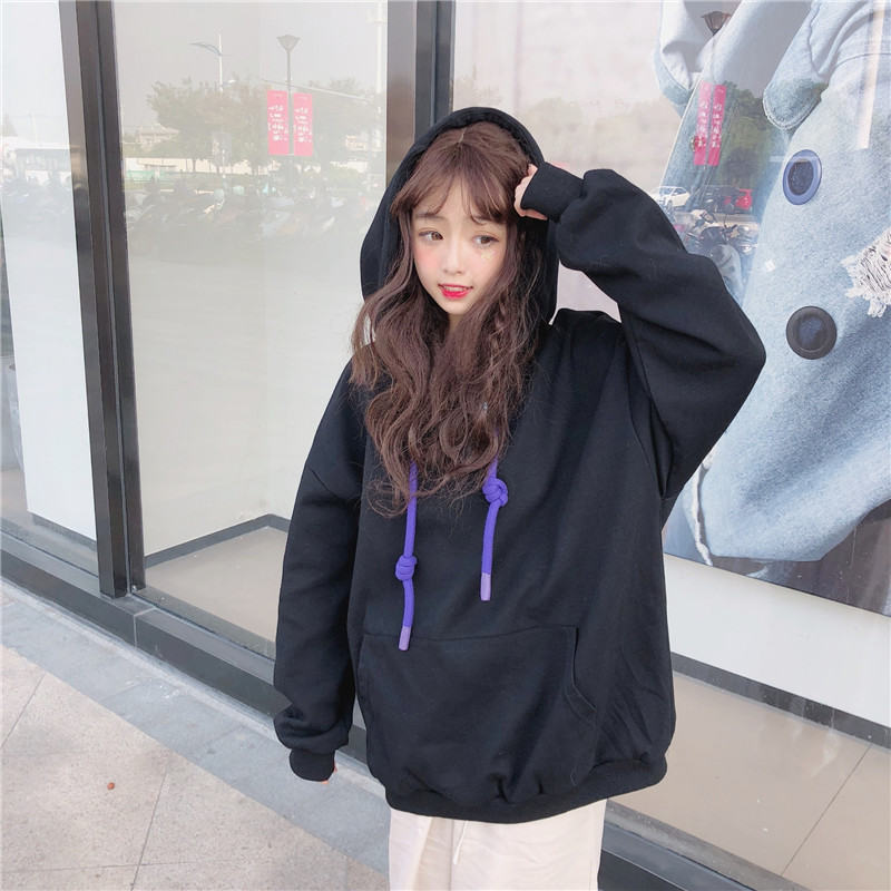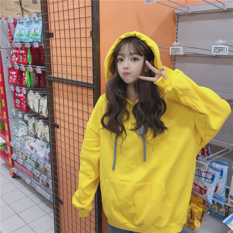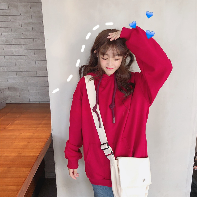 / 2018新款秋冬韓版中長款BF風寬松純色連帽加絨加厚超火衛衣外套女