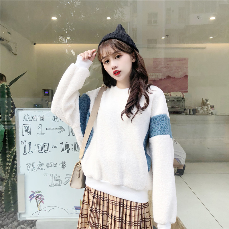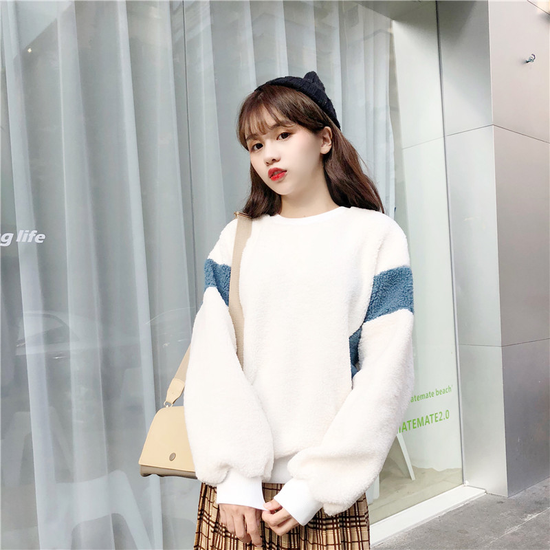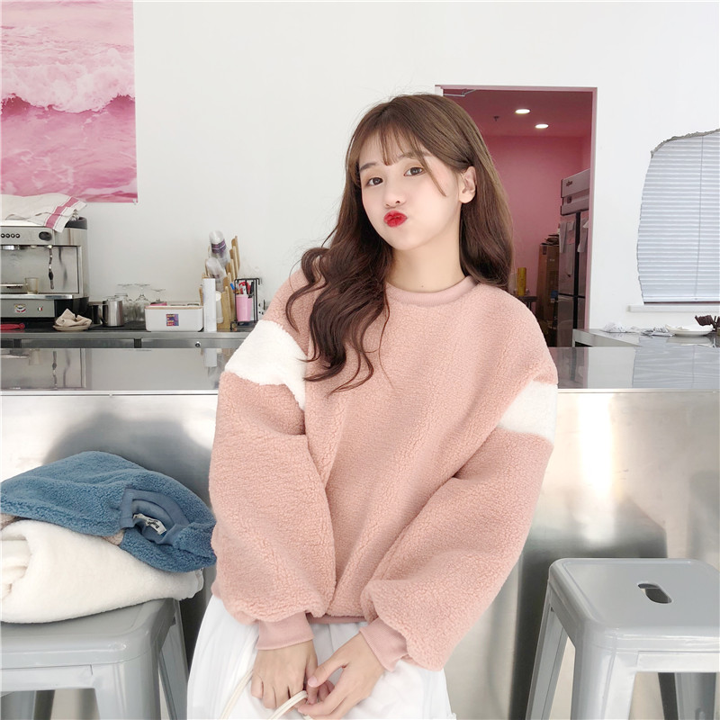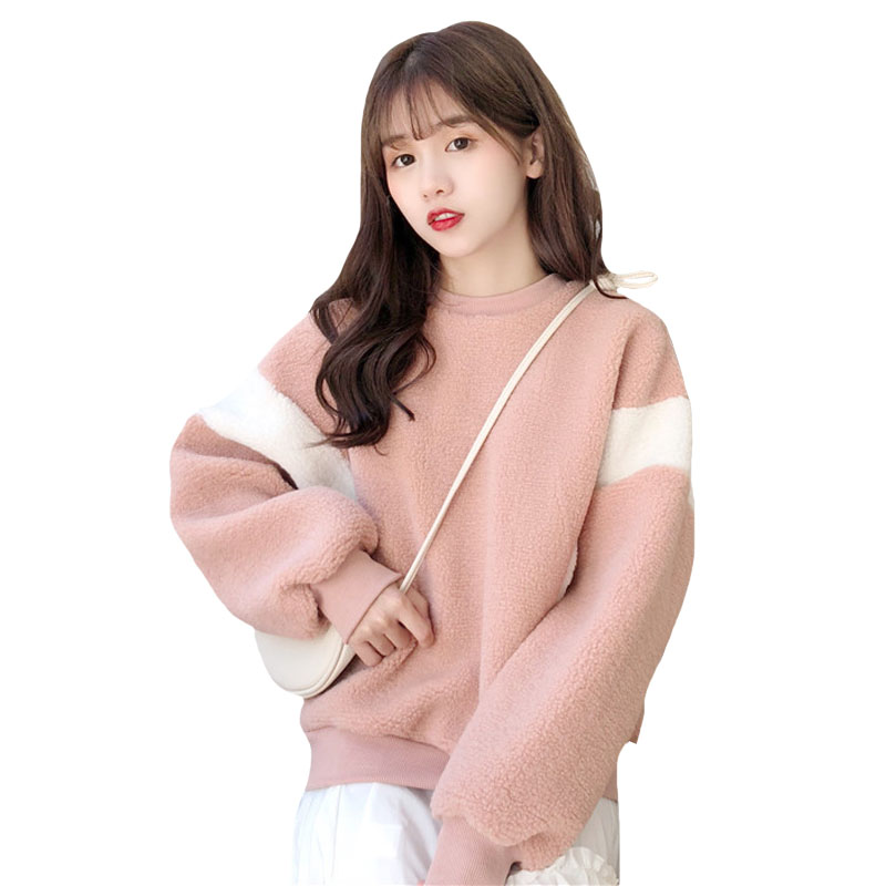 / 秋冬2018新款韓版學院風寬松仿羊羔毛pp home超火衛衣上衣外套女