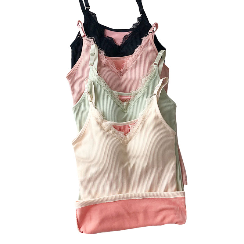 / 秋冬韓版加絨加厚修身顯瘦吊帶背心學生打底衫托胸保暖內衣上衣女