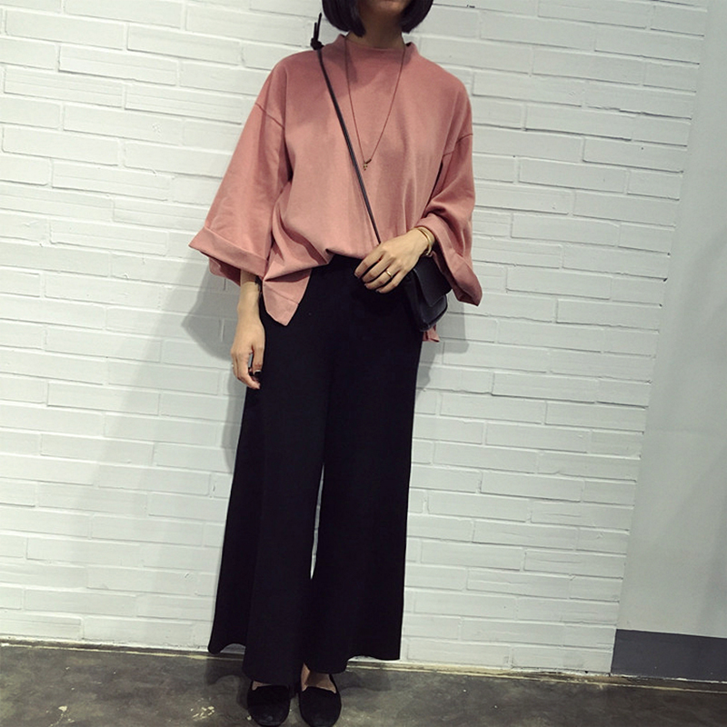 大大的寬松的七分袖,配上闊腿褲小白鞋系進去一點點,韓妹子咿呀咿呀喲