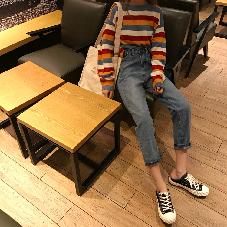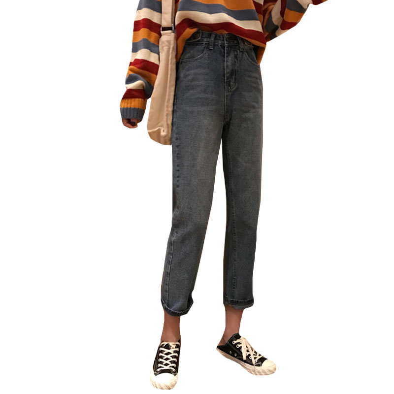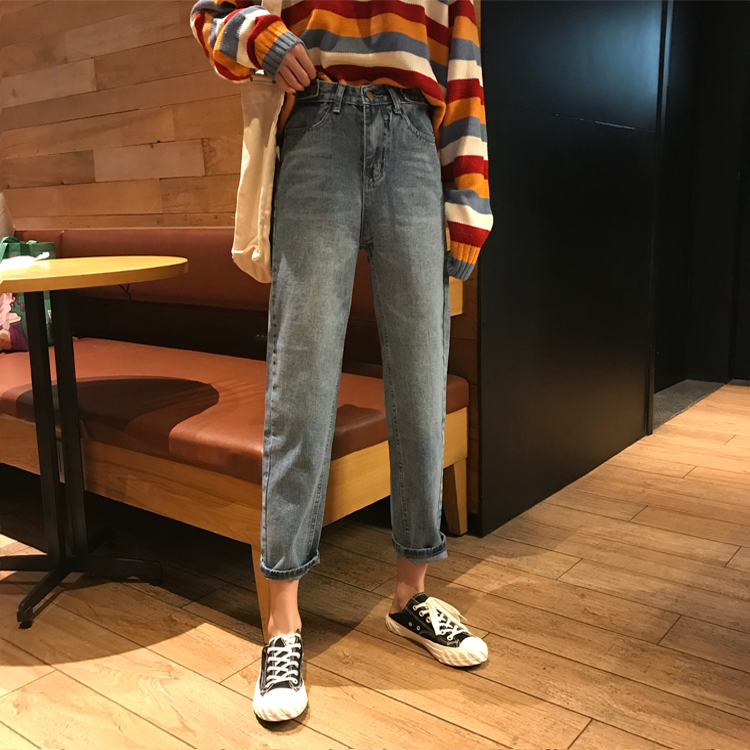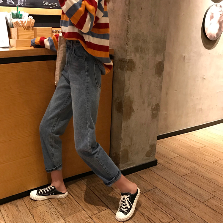 秋季2018新款女裝韓版寬松顯瘦牛仔褲高腰復古直筒褲闊腿褲九分褲