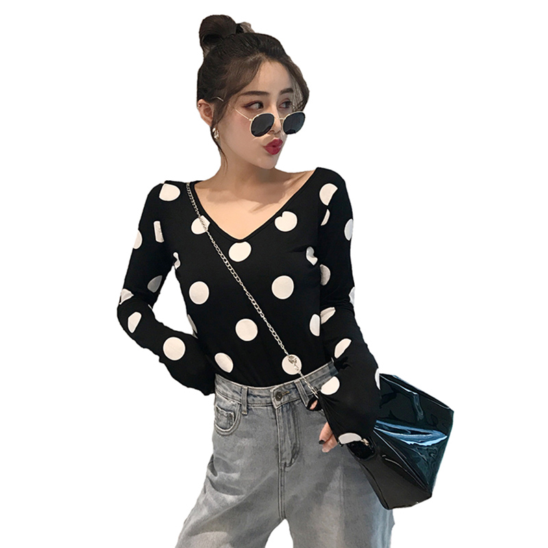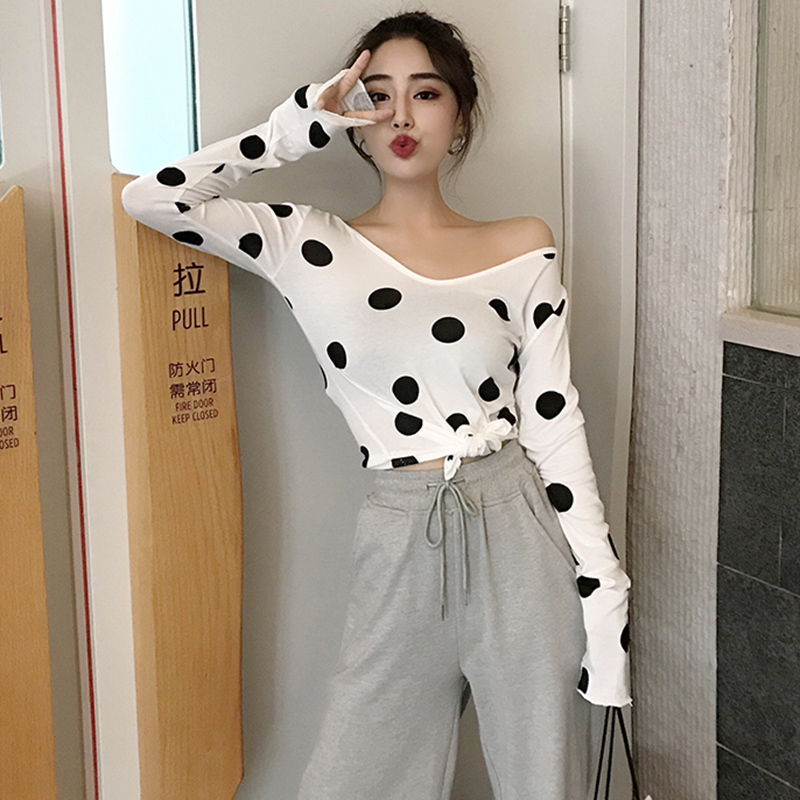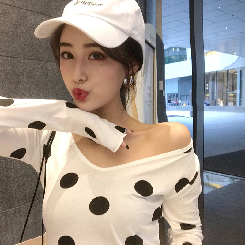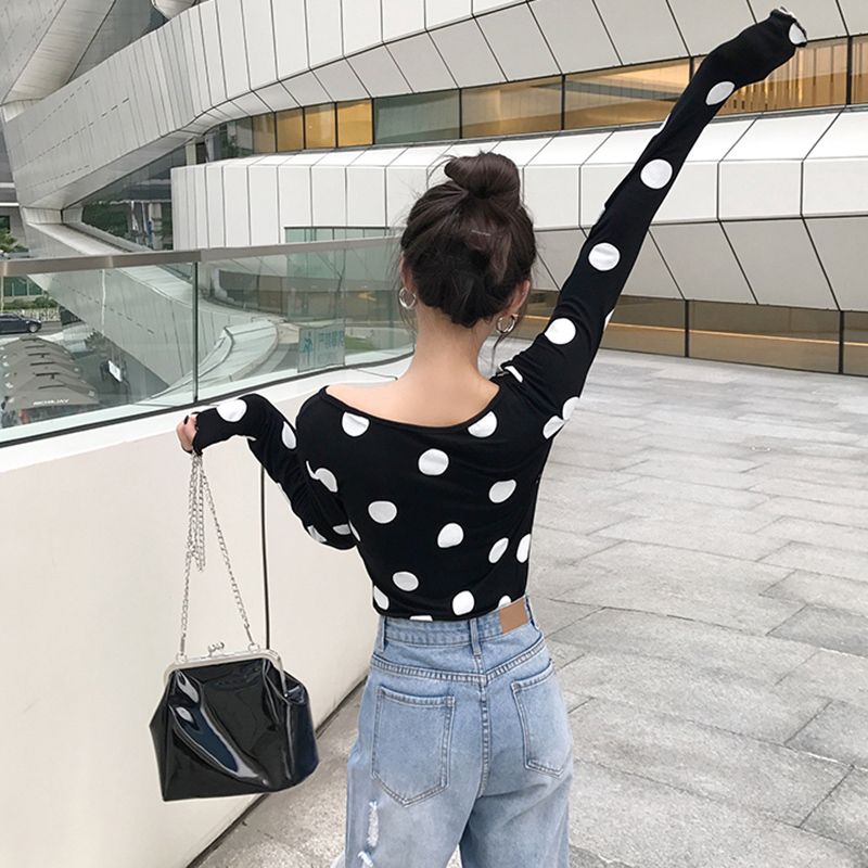 / 秋季新款女裝韓版學生百搭少女上衣港味波點氣質修身顯瘦長袖T恤