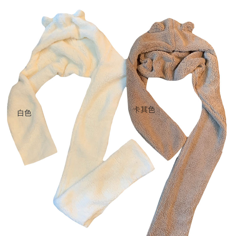 冬季韓版仿羊羔毛加厚可愛小熊耳朵保暖圍巾帽子情侶款連帽圍脖女