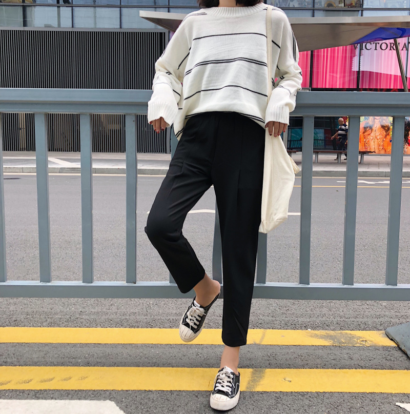 / 秋季韓版寬松百搭蘿卜褲學生高腰顯瘦哈倫褲直筒褲休閑褲九分褲女