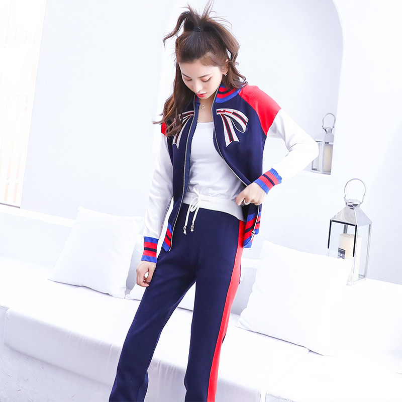 / 歐洲站2018秋裝新款針織休閑運動服套裝女秋冬裝網紅兩件套時尚潮