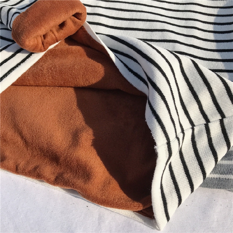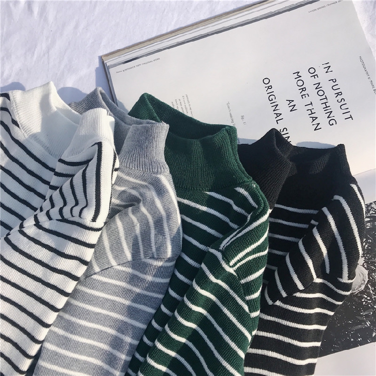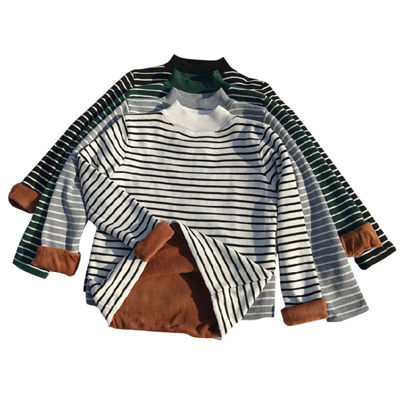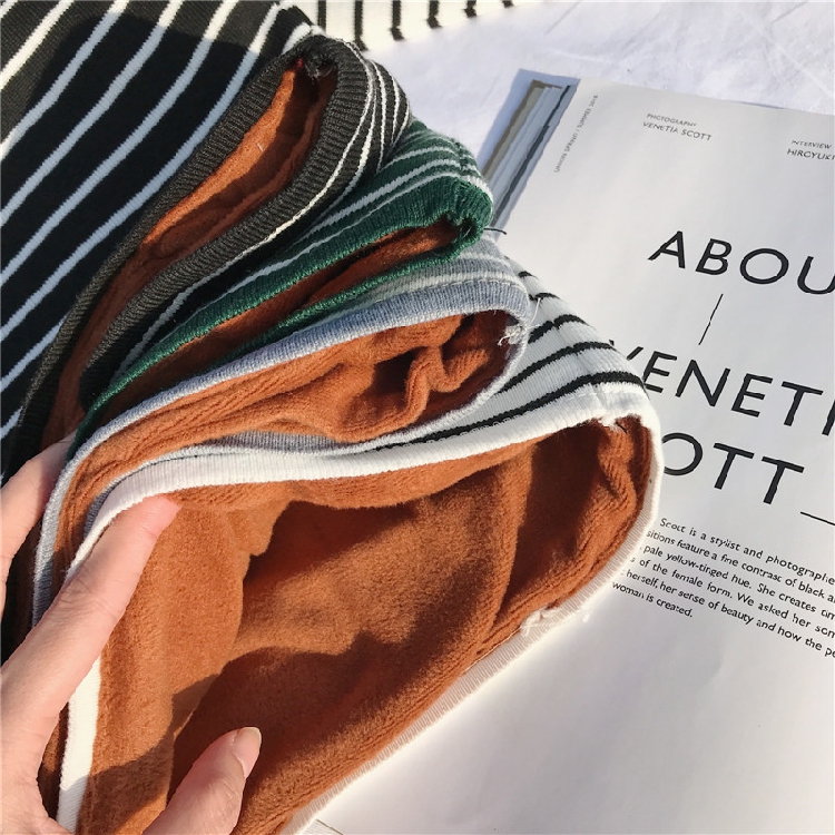 / 秋冬韓版加絨加厚保暖條紋百搭高領打底套頭針織衫外穿毛衣上衣女