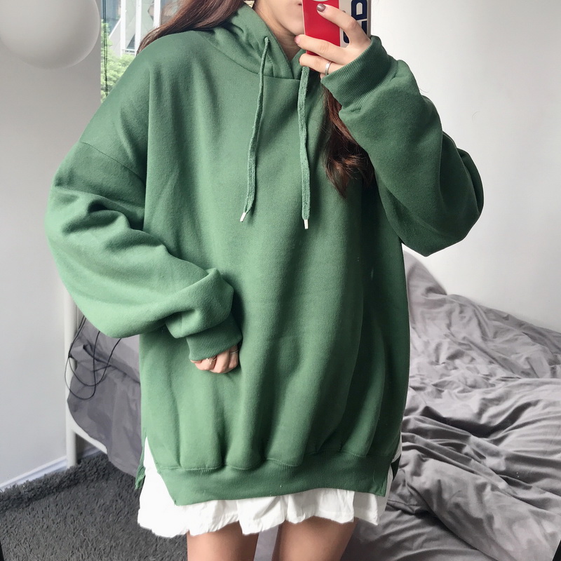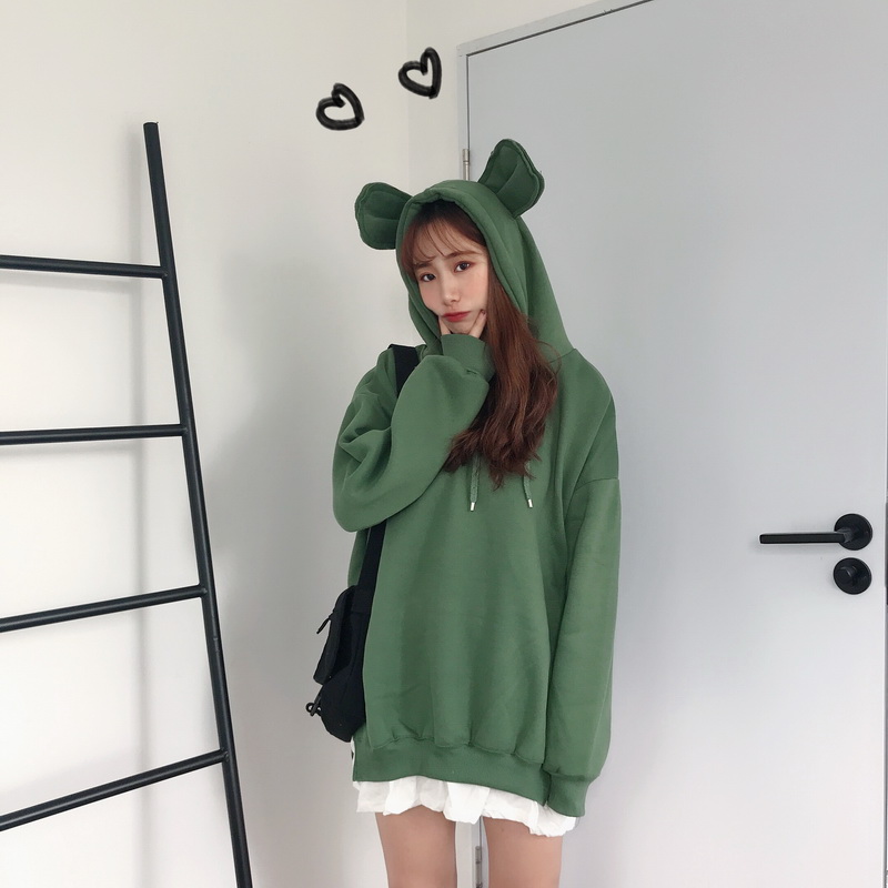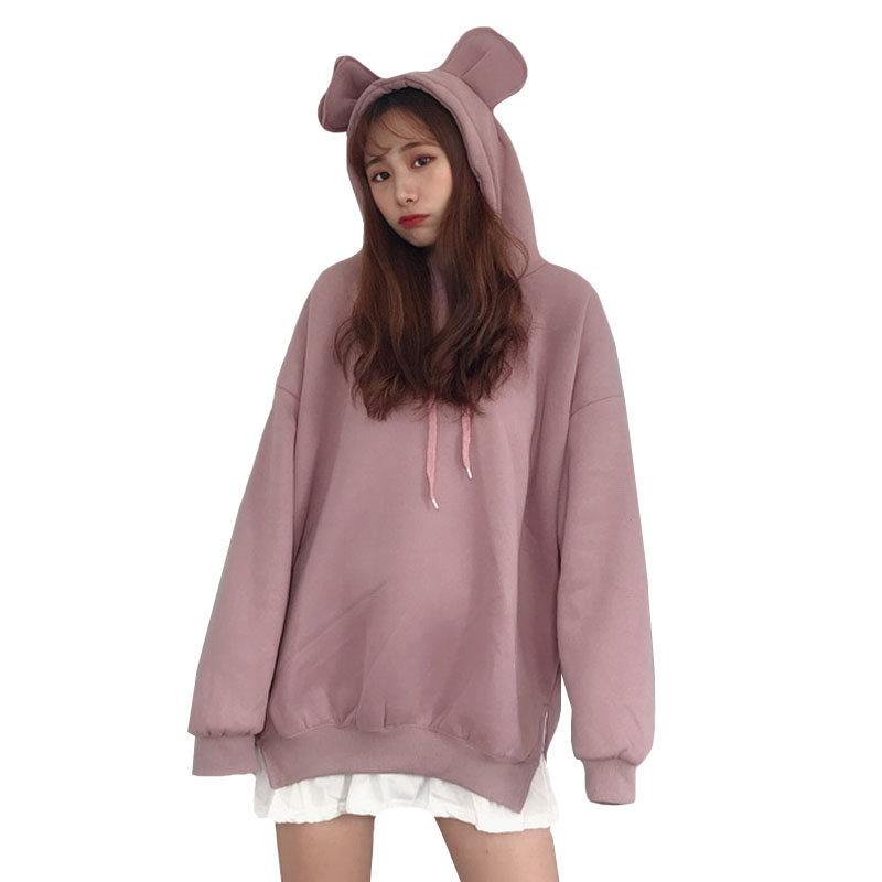 秋冬韓版中長款兔耳朵連帽假兩件加絨加厚套頭超火衛衣上衣外套女