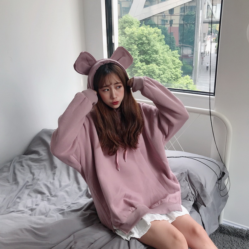 / 秋冬韓版中長款兔耳朵連帽假兩件加絨加厚套頭超火衛衣上衣外套女