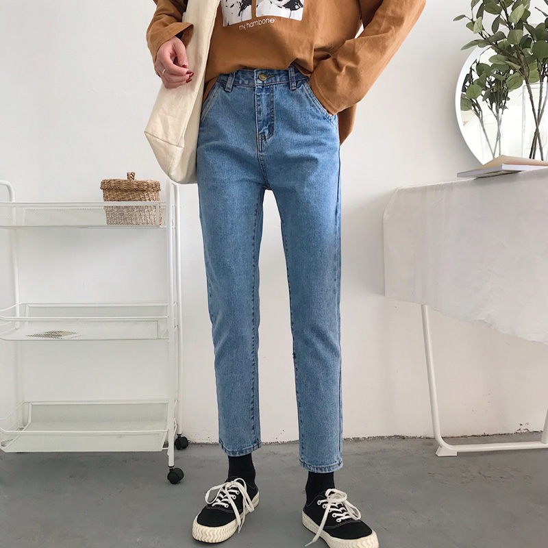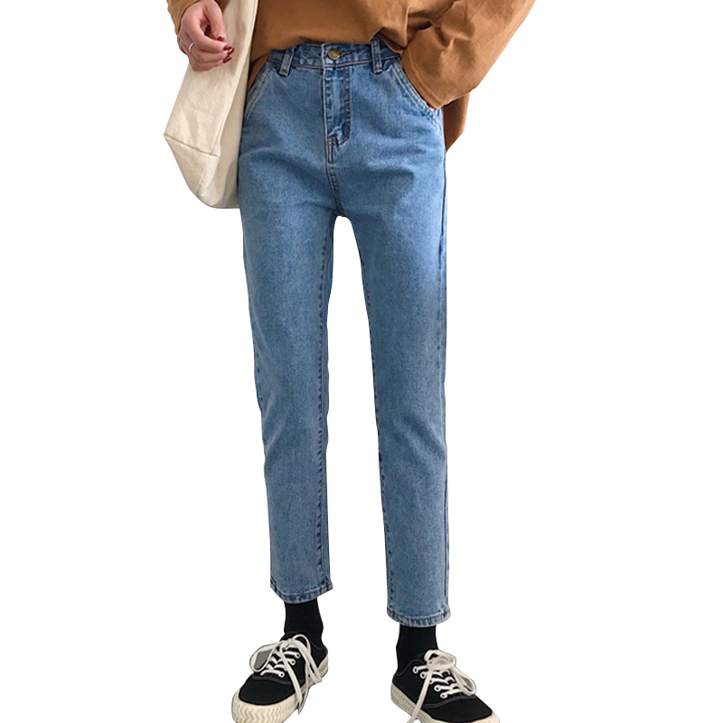 / 秋裝女裝韓版高腰休閑褲直筒褲九分褲顯瘦牛仔褲長褲學生小腳褲潮