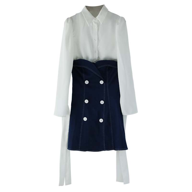 / 兩件套連衣裙女2018秋季新款長袖襯衫牛仔中長款半身裙套裝裙子潮