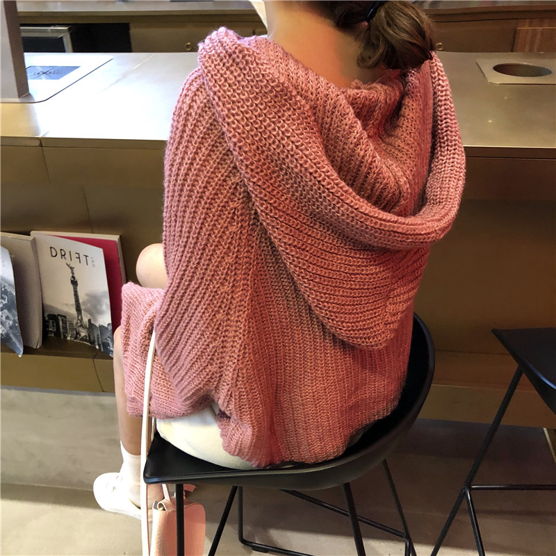/ 秋冬韓版短款蝙蝠袖寬松連帽套頭針織衫慵懶風長袖毛衣上衣外套女